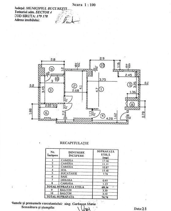 ID 3C015 Va propunem spre vanzare un apartament cu 3 camere semidecomandat situat la 4 minute de mers pe jos de Bulevardul Alexandru Obregia si de mijloacele de transport in comun Suprafata 68 mp Etaj 4/4 Se preda mobilat-utilat Dispune de loc de parcare Actele sunt pregatite pentru vanzare mutare imediata Comision standard Pret 95 800 euro Pentru mai multe detalii programari pentru vizionare sau oferte similare ma puteti contacta la 0731 631 324 - Elena
