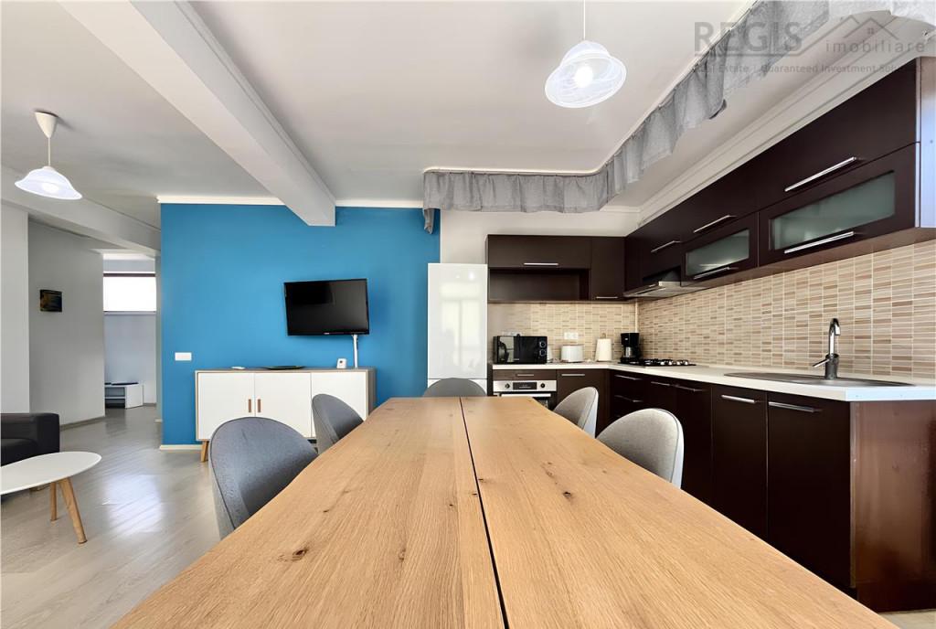 ID intern 6358 Disponibil din 1 Februarie REGIS Imobiliare va ofera spre inchiriere un apartament nou si spatios intr-o zona centrala Acesta se afla pe str De Mijloc 85 intr-o vila boutique la 20 min mers de Piata Sfatului Vila este finalizata in 2014 si dotata cu camere de supraveghere 24/7 Ea include un total de 5 apartamente fiecare izolat termic pentru costuri reduse al utilitatilor Detalii - Suprafata 85 mp utili - 3 camere - Etajul 1 din 2 - Orientare SE - Centrala proprie Viessmann cu termostat inteligent Salus Compartimentare openspace - living cu bucatarie open-space 2 dormitoare hol baie si 2 balcoane Complet utilat cu - plita cuptor cuptor cu microunde hota frigider masina de spalat rufe TV si aer conditionat In Aprilie 2025 a fost montat aerul conditionat de tip Bosch A Detalii imobil - Casa finalizata in 2014 - 5 Apartamente in total - Izolata pentru un confort termic optim - Supraveghere video 24/7 Zona apartamentului ofera acces facil la - Piata Sfatului 1 8 km - Opera 800 m - Statie autobuz Morii si Memorandului si 300 m si 400 m - Supermarket Kaufland si aprozar 500 m si 600 m - Sala de sport Evolution Fitness 1 km - Colina universitatii Transilvania si American Hotel Academy 1 5 km si 2 km - Easy Box 500 m Inchirierea se realizeaza prin plata de 1 luna chirie 1 luna garantie si comision agentie Comisionul este 50 TVA din valoarea chiriei pe o singura luna Va astept cu drag la vizionare