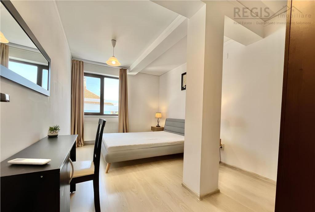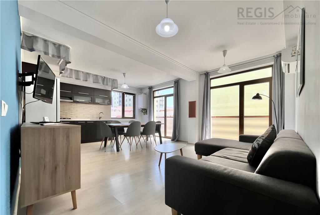 ID intern 6372 Regis Imobiliare va prezinta spre inchiriere un apartament modern de 3 camere situat Ultracentral Localizat intr o curte interioara amenajata cu jardiniere cu flori si cu vedere spre Tampa acest apartament mobilat modern si decorat cu gust este format dintr un living openspace cu bucataria dormitor matrimonial dormitor pentru copii si baie De la aceasta locatie se ajunge in cateva minute in Piata Sfatului pe promenada de Sub Tampa in Schei si la alte puncte de atractie turistica Apartamentul este disponibil si pentru inchiriere pe perioada scurta Comisionul agentiei este de 50 TVA o singura data la semnarea contractului