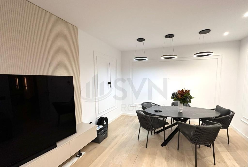 REA1025873 SVN Residentialist va propune spre vanzare un apartament modern cu 3 camere situat in ansamblul rezidential Triana in zona Pipera Apartamentul are o suprafata utila de 72 mp 85 mp construiti compartimentata eficient in doua dormitoare un living spatios doua bai elegante o terasa generoasa de 13 36 mp si o gradina privata de 37 81 mp ideala pentru relaxare in aer liber Locuinta beneficiaza de finisaje premium inclusiv parchet triplu stratificat bai complet amenajate cu gresie si faianta de calitate superioara sistem integrat de aer conditionat mobilier realizat pe comanda si bucatarie complet echipata cu electrocasnice moderne Apartamentul se vinde complet mobilat gata de mutare Proprietatea este detinuta de persoana fizica astfel ca nu se aplica TVA Cele doua locuri de parcare subterane nu sunt incluse in pret insa pot fi achizitionate separat la valoarea de 30 000 euro TVA Locatarii ansamblului Triana beneficiaza de facilitati exclusive pre...