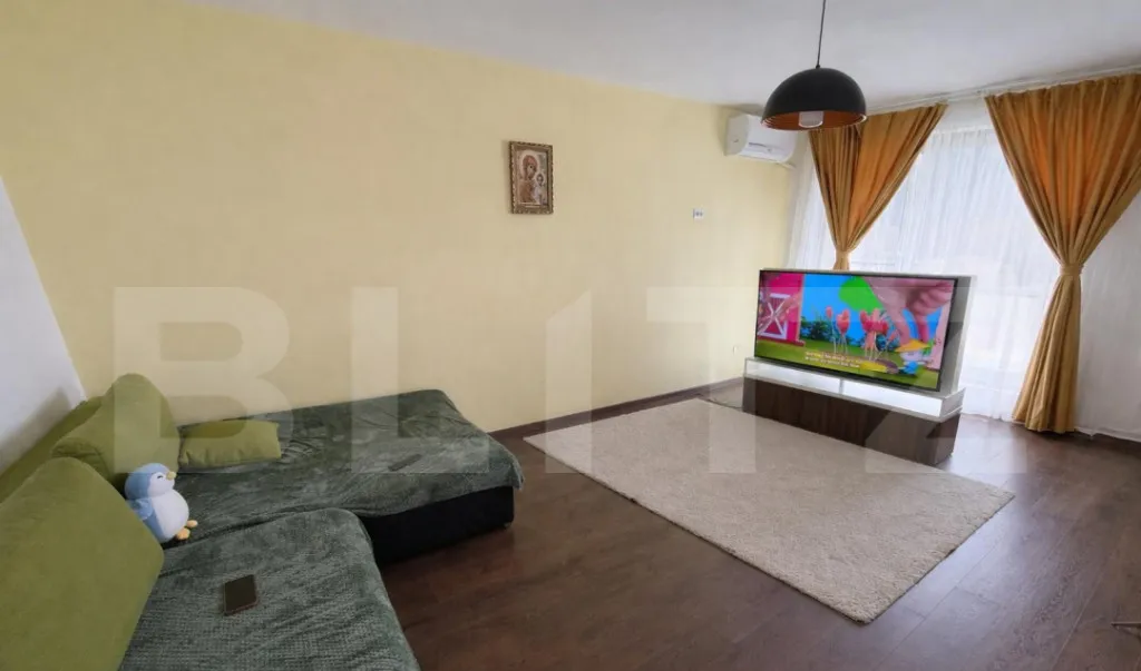 Apartamentul este poziționat pe latura însorită, beneficiind de lumină naturală pe tot parcursul zilei, iar zona este linistita
