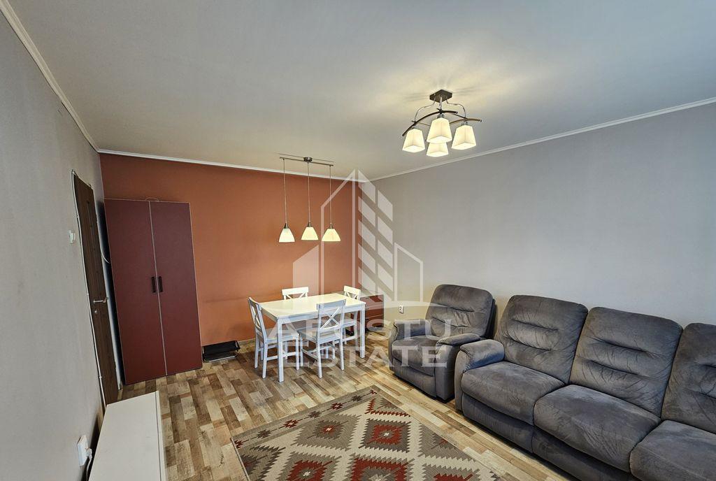 APOSTU ESTATE va propune spre vanzare un apartament cu 3 camere mobilat si utilat situat la etajul 1 din 7 intr-un bloc anvelopat cu lift Apartamentul este semidecomandat are o suprafata utila de 65 mp si se remarca prin compartimentarea eficienta si multiplele spatii de depozitare Este o alegere ideala atat pentru locuit cat si pentru investitie Compartimentare - hol de acces cu spatiu de depozitare - bucatarie functionala extinsa cu zona de gatit pe balcon inchis debara - dormitor matrimonial - baie cu masina de spalat - living spatios - hol de tranzit cu debara - al doilea dormitor - baie cu dus Dotari si beneficii - se vinde complet mobilat si utilat complet - 3 debarale in apartament - boxa pentru depozitare la subsol - incalzire prin reteaua de termoficare a orasului cu posibilitatea montarii centralei propii pe gaz - bloc dotat cu lift - etaj intermediar inferior 1 din 7 Zona si facilitati Apartamentul este amplasat intr-o zona excelent ...