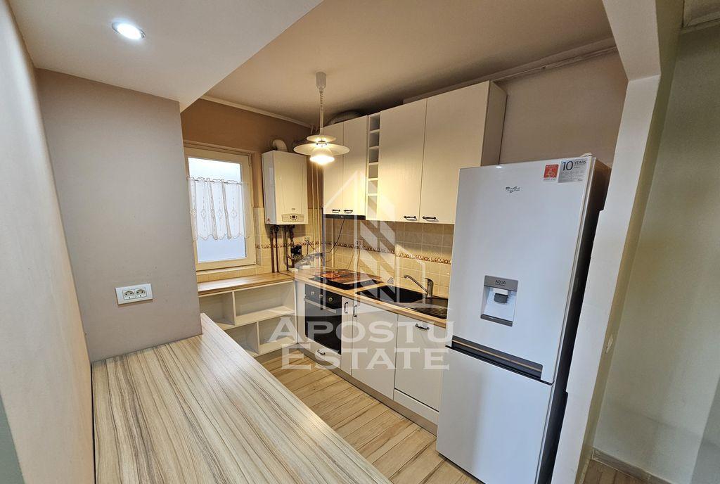 APOSTU ESTATE va propune spre vanzare un apartament cu 3 camere situat in zona Calea Circumvalatiunii in imediata apropiere de Iulius Mall si Piata Unirii - una dintre cele mai cautate si apreciate zone ale Timisoarei Detalii proprietate - Suprafata utila 67 mp - Etaj 8 din 10 - Compartimentare decomandat - Confort 1 - An constructie 1978 Spatii - 3 camere spatioase - 1 bucatarie complet utilata - 1 baie moderna - 1 balcon inchis - 1 boxa la subsol inscrisa in CF Dotari si finisaje - Incalzire prin centrala termica proprie cu calorifere - Aer conditionat - Ferestre termopan si tripan PVC - Podele din gresie si parchet laminat - Contorizare separata apometre si contor gaz Electrocasnice incluse Aragaz cuptor frigider hota masina de spalat rufe masina de spalat vase centrala termica proprie Descriere suplimentara Apartamentul se vinde complet mobilat si utilat exact ca in fotografii fiind disponibil imediat pentru mutare Locuinta se afla intr-un bloc cu interfon si lift iar ferestrele orientate spre partea din spate a blocului ofera liniste si confort Puncte de interes in apropiere Iulius Mall Piata Unirii mijloace de transport in comun supermarketuri scoli si gradinite Acest apartament reprezinta o alegere excelenta atat pentru locuinta proprie cat si ca investitie imobiliara datorita locatiei si facilitatilor oferite Pentru mai multe informatii si programarea unei vizionari contactati echipa APOSTU ESTATE