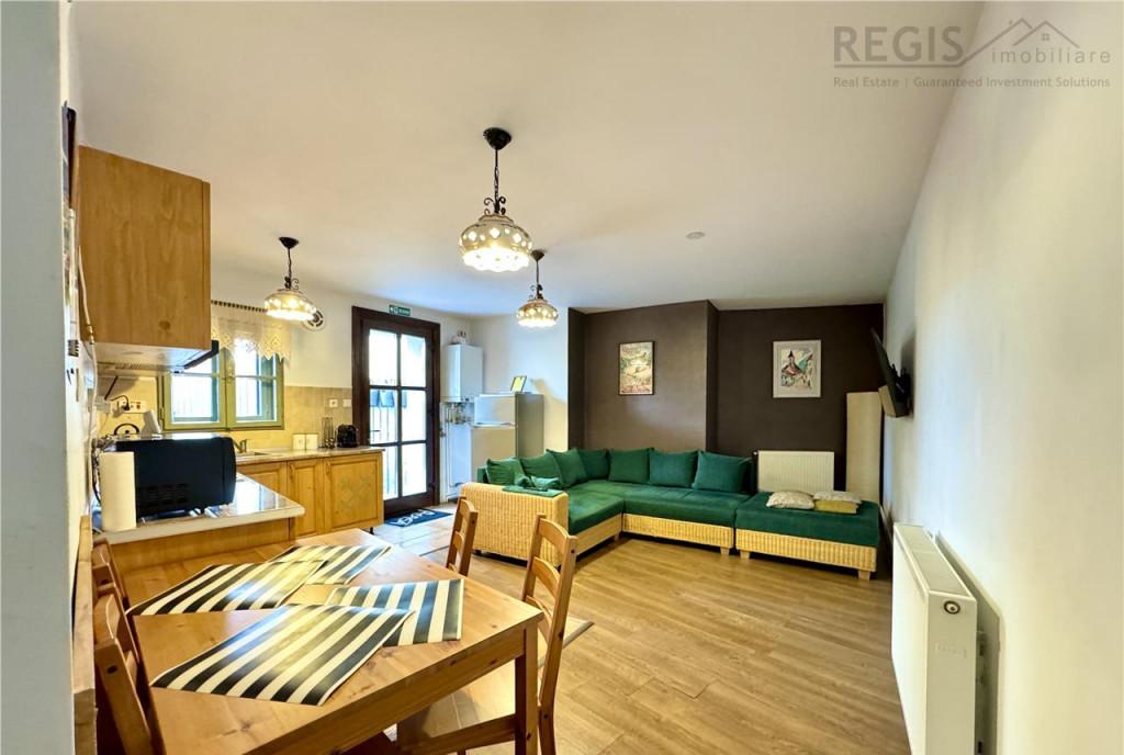 ID intern 6128 REGIS Imobiliare va propune spre vanzare un apartament cu camere 3 confort 1 situat pe Drumul Poienii pe strada Warthe Apartamentul este situat la demisol intr-un imobil cu regim de inaltime D P M avand un acest apartament la demisol unul la parter si doua garsoniere la mansarda Compartimentare Bucatarie open space cu zona de living doua dormitoare o baie hol si inca o camera care este folosita in acest moment ca spalatorie si camera de depozitare Suprafata utila 80 mp Aparatamentul are si o curte de aproximativ 70 mp Curtea este cedata prin declaratii notraiale actualului proprietar al apartamentului de catre ceilalti proprietari ai casei Se vinde mobilat si utilat asa cum este prezentat in poze Apartamentul este pretabil pentru regim hotelier sau ca si locuinta personala Este situat intr-o zona linistita aproape de toate punctele de interes din centrul orasului In imediata apropiere Livada Postei 350 m Parc 200m Piata Sfatului 20 de minute de mers pe jos Carrefour Express 15 minute de mers pe jos - aporox 700 m Cafenele restaurante scoli/gradinite/licee Pret 165 000 euro Comisionul agentiei este de 2 TVA din valoarea tranzactionata Pentru mai multe detalii si vizionari 0774 994 172