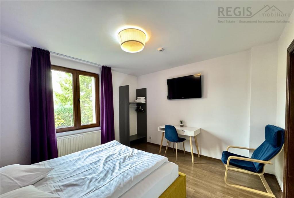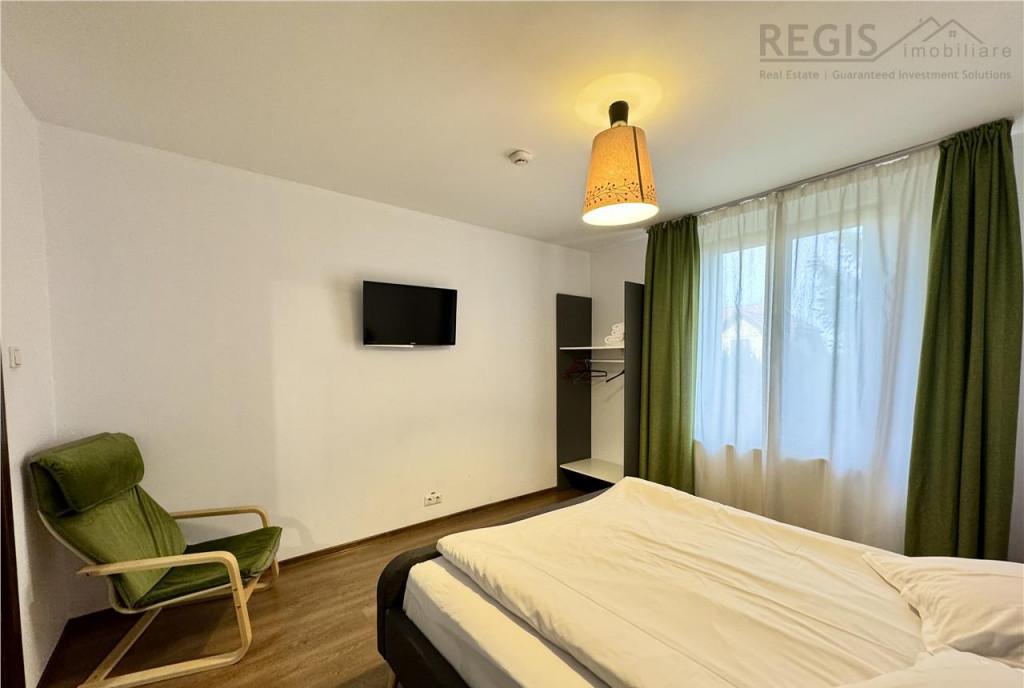 ID intern 5802 REGIS Imobiliare va propune spre vanzare un Apartament modern de vanzare in centrul Brasovului ndash Str Alexandru Ioan Cuza langa Hotel Ambient - 2 camere open space 47 mp utili curte privata 10 mp - Bloc boutique nou 2016 demisol cu acces la curtea interioara - Incalzire Centrala termica noua schimbata Octombrie 2025 incalzire in pardoseala izolatie interioara amp exterioara lumina naturala toata ziua - Compartimentare eficienta bucatarie complet utilata living dormitor cu dressing baie moderna Localizare premium - 200 m de Hotel Ambient - 30 m de statia de autobuz - 300 m de Lidl - 5 minute de Gara Brasov Acces rapid la Piata Sfatului Mall AFI scoli restaurante si drumul spre Poiana Brasov Ideal pentru investitie in regim hotelier birou sau locuinta permanenta / de vacanta Comision 2 TVA