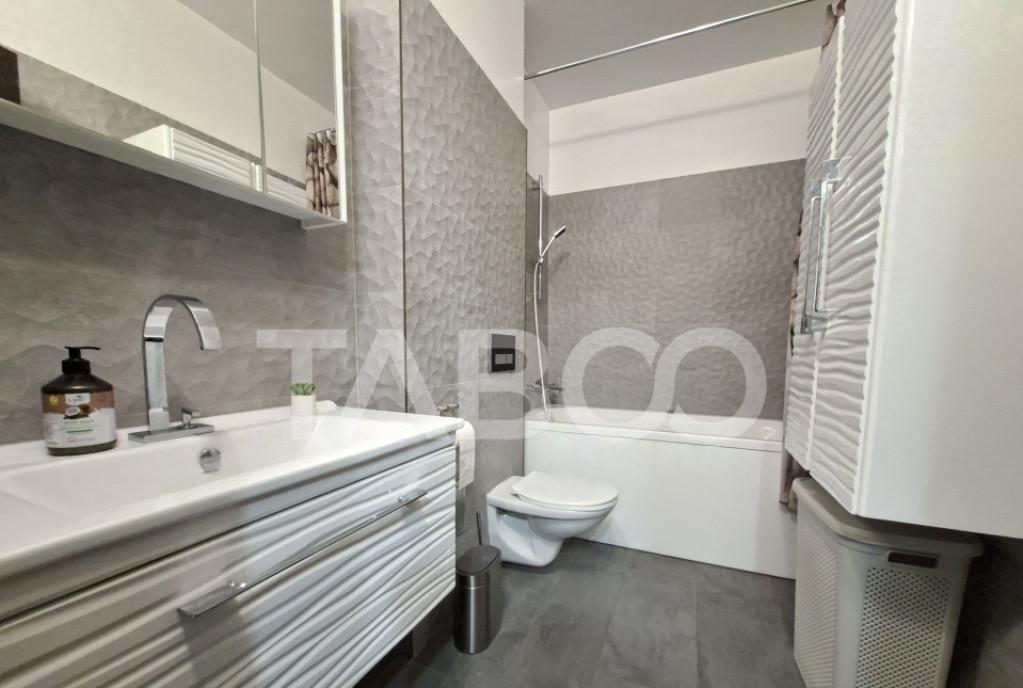 Apartament 2 camere de vanzare decomandat 59 mp zona Doamna Stanca Sibiu Avantaje majore ale acestui apartament nbsp bull Locuri de parcare in curte cu acces privat bull Pretabil investitie sigura TABOO Imobiliare propune un apartament de vanzare cu 2 camere decomandat situat in localitatea Sibiu zona Doamna Stanca aflat la etajul 5 intr -un imobil tip bloc cu regim de inaltime pe Parter 11 Etaje anul constructiei 2015 structura caramida Suprafata utila de 59 mp balcon de 5 mp Apartamentul este structurat astfel bull Hol bull Baie bull Living cu bucatarie si balcon bull Dormitor cu balcon Finisajele interioare sunt moderne bull Usa intrare metal bull Usi interioare celulare nbsp nbsp nbsp nbsp nbsp nbsp nbsp bull Tamplarie ferestre pvc termopan nbsp nbsp bull Pereti vopsea lavabila faianta bull Podele parchet marmura Utilitati si dotari bull Bucatarie mobilata utilata ...