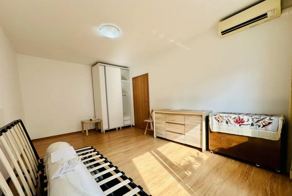 Parchetul din lemn masiv poate fi restaurat, adăugând un plus de caracter. Apartamentul necesită renovare – un avantaj pentru cei care vor să îl modernizeze după propriul stil.