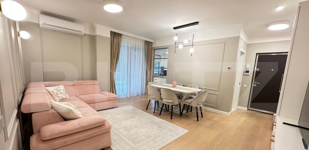 Blitz va propune spre vanzare un apartament modern cu 3 camere gradina proprie si loc de parcare subterana situat la parter inalt al unui imobil nou cu regim de inaltime D P 3 finalizat in 2022 amplasat intr-un complex rezidential retras din cartierul Buna Ziua Apartamentul are o suprafata utila de 75 mp fiind eficient compartimentat astfel hol de acces living luminos bucatarie inchisa 2 dormitoare 2 bai Orientarea sudica impreuna cu terasa acoperita si gradina proprie frumos amenajata asigura un nivel ridicat de confort intimitate si lumina naturala Imobilul beneficiaza de finisaje premium fiind complet mobilat si utilat cu electrocasnice de calitate superioara Dotari si facilitati incalzire in pardoseala automatizata si controlabila individual pe fiecare camera sistem de alarma supraveghere video exterioara sistem de irigatii automatizat pentru gradina Complexul este bine organizat si atent amenajat oferind spatii de joaca pentru copii zone de relaxare alei de promenada spatii verzi generoase supraveghere video iluminat public acces exclusiv pentru riverani La cerere se poate achizitiona si un al doilea loc de parcare Proprietatea este ideala pentru cei care isi doresc liniste confort si un stil de viata modern intr-o zona premium a orasului cu acces facil si un cadru rezidential sigur Cod oferta / ID BLITZ P161939 Id intern P161939