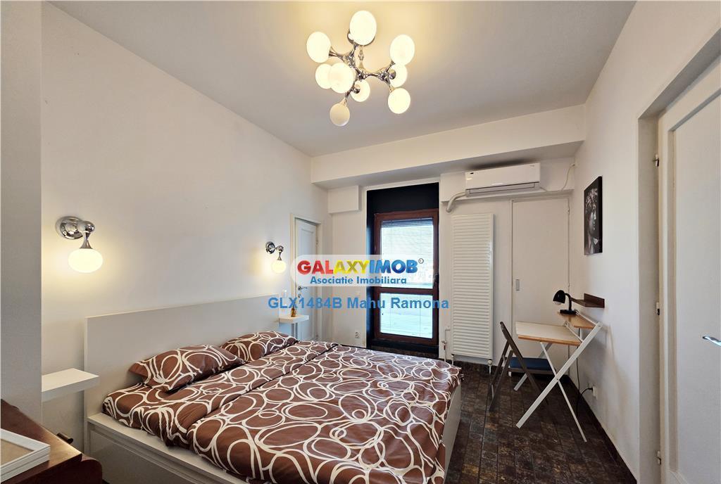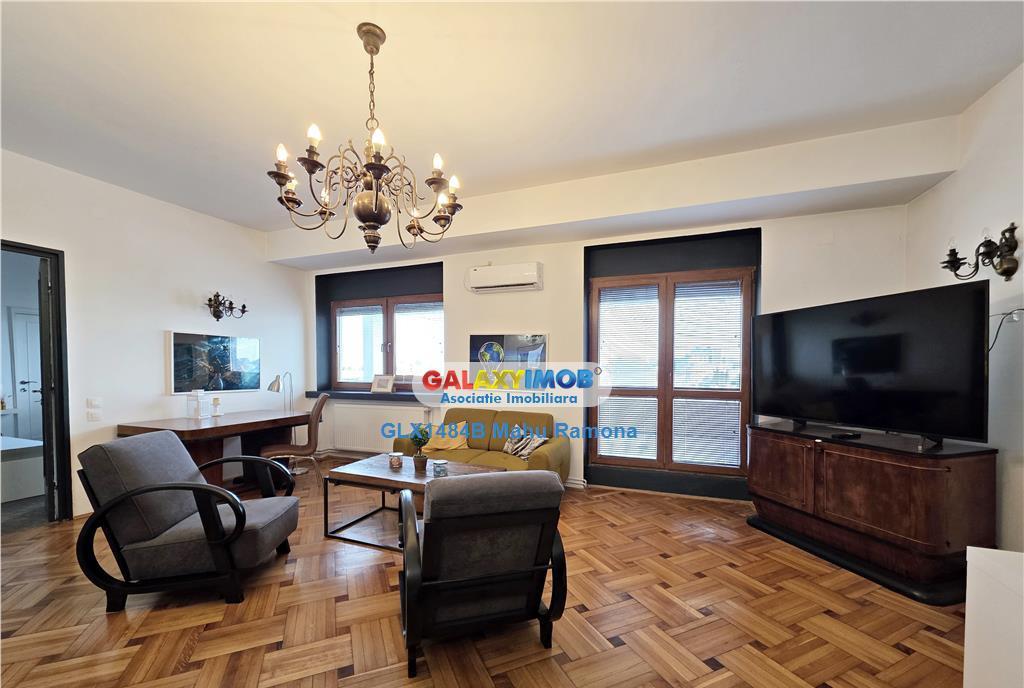 Oferta Exclusiva Avem cheile proprietatii Va propunem spre inchiriere un cochet apartament de 4 camere situat intr-un imobil construit in 1947 consolidat imediat dupa 1977 in apropiere de Parcul Izvorul Rece si Biserica Popa Soare Este mobilat complet cu foarte mult gust designul fiind o imbinare a stilurilor art-deco si modern Multe piese de mobilier au fost reconditionate si adaptate stilului de viata modern iar cele noi au fost alese cu grija pentru a se potrivi cu designul apartamentului Impartirea este semi-decomandata accesul in unul dintre cele doua dormitoare facandu-se din living Living-ul este generos avand 29 29 mp la care se adauga o camera de 15 37 mp despartita de living printr-o usa culisanta Atractia zonei de zi o constituie semineul care a fost reconditionat Dormitorul matrimonial prevazut cu baie proprie si dressing are o suprafata de 12 60 mp Baia matrimoniala este amenajata modern cu obiecte sanitare noi de foarte buna calitate cada si chiar un TV daca doriti sa va urmariti emisiunea preferata in timpul unei bai relaxante Dormitorul secundar este generos ca suprafata 23 23 mp si a fost prevazut cu o baie cu cabina de dus si chiuveta fara WC prin reamenajarea unei debarale Toaleta de serviciu este accesibila din holul de intrare in apartament Bucataria are intrare atat din holul principal cat si din living printr-un hol de trecere Dotarile bucatariei sunt de ultima generatie iar mobilierul este nou si modern Din constructie bucataria a fost prevazuta cu un loc de gratar folosind cosul de evacuare al semineului din living Apartamentul dispune de multiple spatii de depozitare camera tehnica debara balcon inchis cu acces la scara de serviciu Aflat la etajul 5 al unei cladiri cu 6 etaje mansarda apartamentul dispune de o terasa generoasa de 43 mp un loc perfect pentru petrecerea timpului liber in zilele insorite Accesul catre terasa se poate face atat din living cat si din cele doua dormitoare Terasa este prevazuta cu un sistem de pulverizare fina a apei pentru a va racori in zilele toride de vara Amplasarea in centrul Bucurestiului apropierea de cele mai importante zone de interes de magazine scoli locuri de joaca pentru copii banci institutii restaurante mijloace de transport in comun etc face ca acest apartament sa fie foarte atractiv pentru persoanele care doresc sa locuiasca in inima orasului Contractul de inchiriere se va inregistra la ANAF Comisionul agentiei 50 din prima chirie Pentru comision se emite factura fiscala fara TVA Informatii eficienta energetica Clasa energetica C Consumul de energie primara Indicele de emisii echivalent CO2 Consum de energie din surse regenerabile