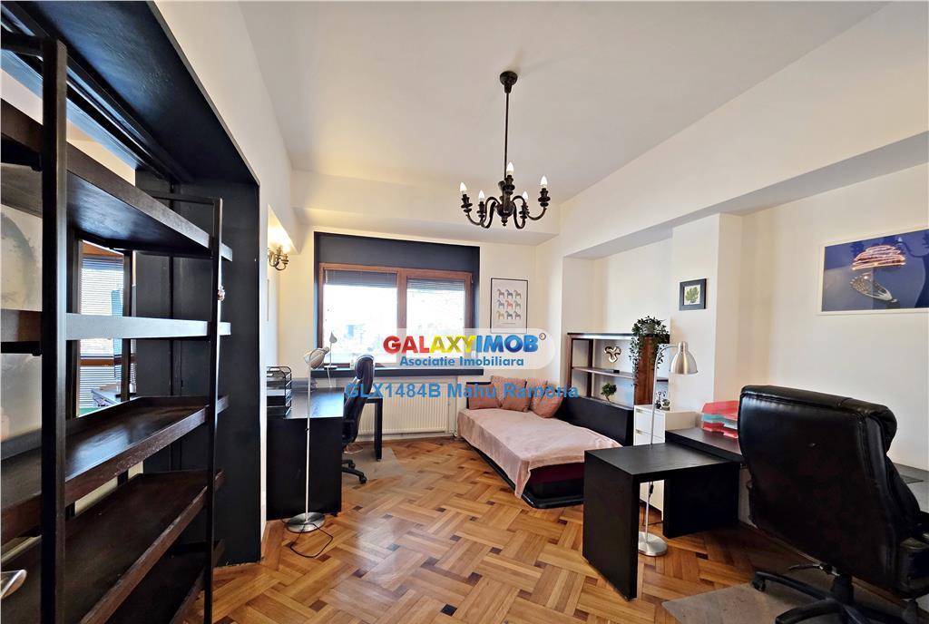Unele spatii nu sunt doar patru pereti ci decorul perfect pentru idei mari Intr-o vila interbelica cu personalitate recent renovata complet in 2025 se afla un apartament de 4 camere care isi asteapta noul chirias - un antreprenor vizionar un cabinet de prestigiu sau un birou unde eleganta intalneste eficienta Pasind in acest spatiu esti intampinat de lumina proportii armonioase si un aer aparte - acel ceva care nu poate fi imitat S-au pastrat elementele originale de arhitectura tavane inalte usi inalte detalii fine care spun povestea unei epoci dar fiecare metru patrat a fost readus la standardele actuale Instalatiile electrice si sanitare sunt complet noi finisajele au fost alese cu grija iar intreaga amenajare respecta spiritul locului fara a compromite functionalitatea moderna Apartamentul dispune de patru camere generoase o baie principala si un grup sanitar de serviciu o bucatarie spatioasa care poate deveni usor un spatiu de relaxare sau socializare ...
