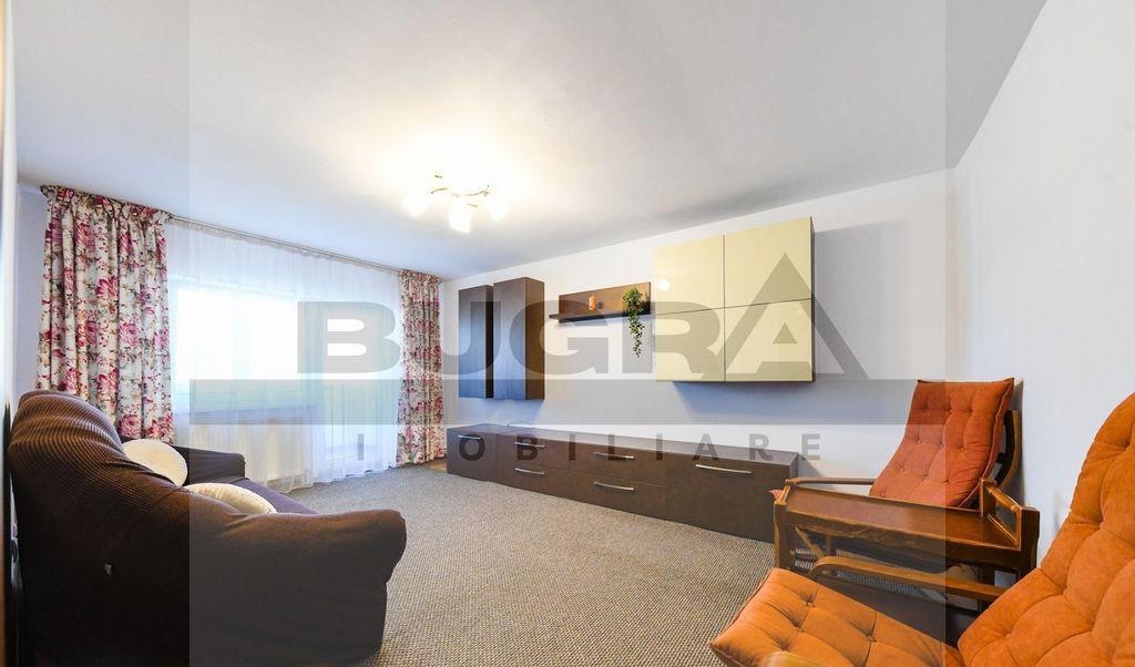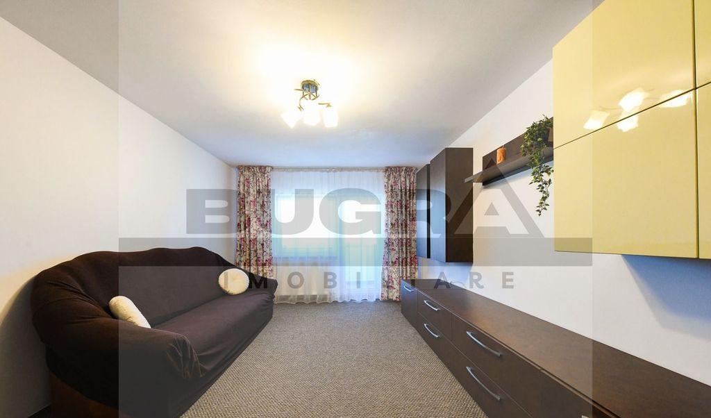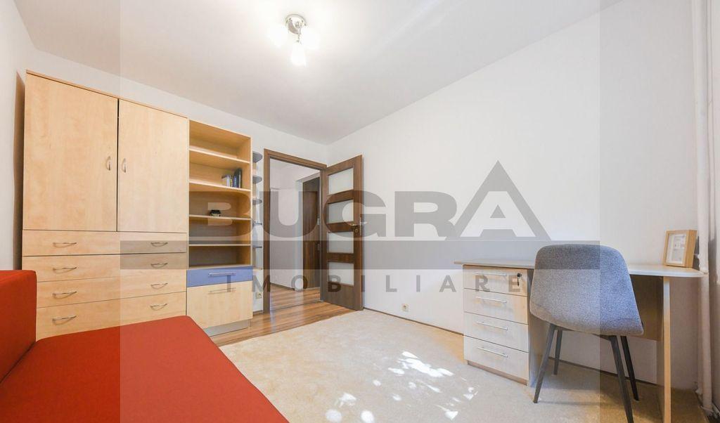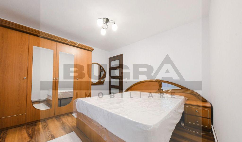 Bugra Imobiliare va propune spre inchiriere un apartament modern cu 4 camere decomandate situat in cartierul Gheorgheni in zona Nicolae Titulescu Locuinta se afla la etajul 3 din 4 al unui imobil nou si are o suprafata utila de 85 mp Compartimentarea este decomandata si include 3 dormitoare living bucatarie baie 2 balcoane spatiose cu acces atat din living cat si dintr-un dormitor Apartamentul este dotat cu centrala termica proprie si se inchiriaza complet mobilat si utilat pregatit pentru mutare Contra sumei de 50 euro/luna se poate inchiria si un loc de parcare in fata blocului Te asteptam cu drag la vizionare