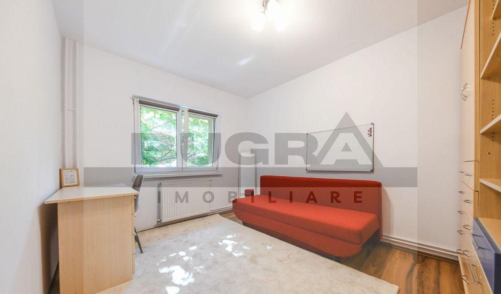 Bugra Imobiliare va ofera spre inchiriere un apartament de 4 camere situat in cartierul Marasti zona Leroy Merlin cu acces rapid la statia pentru transport in comun Se inchiriaza COMPLET mobilat si utilat chiar dupa cerintele chiriasului potrivit atat pentru locuinta cat si pentru spatiu de birouri Apartamentul este pozitionat la etaj 1 si 2 unui imobil tip casa/duplex cu 2 niveluri si dispune de o suprafata utila de 100 mp Compartimentarea este una semidecomandata si dispusa astfel 3 camere living cu bucatarie hol 1 bai si 2 balcoane o gradina de 32 mp Apartamentul beneficiaza de centrala termica proprie cu incalzire in pardoseala si se ofera spre inchiriere complet mobilat si utilat In pretul afisat este inclus si 2 locuri de parcare in fata imobilului Disponibilitate imediata Te asteptam cu drag la vizionare