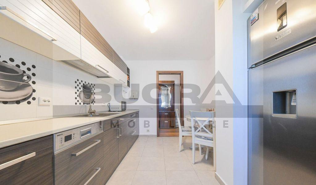 Se inchiriaza COMPLET mobilat si utilat la cerere Bugra Imobiliare va ofera spre inchiriere un apartament PET-FRIENDLY de 2 camere situat in cartierul Borhanci intr-un complex rezidential la 2 minute de magazine si aproape de statile de transport in comun Apartamentul este pozitionat la parterul unui imobil nou cu 3 nivele si dispune de o suprafata utila de 60 mp Compartimentarea este una moderna decomandata si dispusa astfel living bucatarie dormitor baie gradina de 60 mp Apartamentul dispunde de masina de spalat vase si haine Disponibil imediat Te asteptam la vizionare