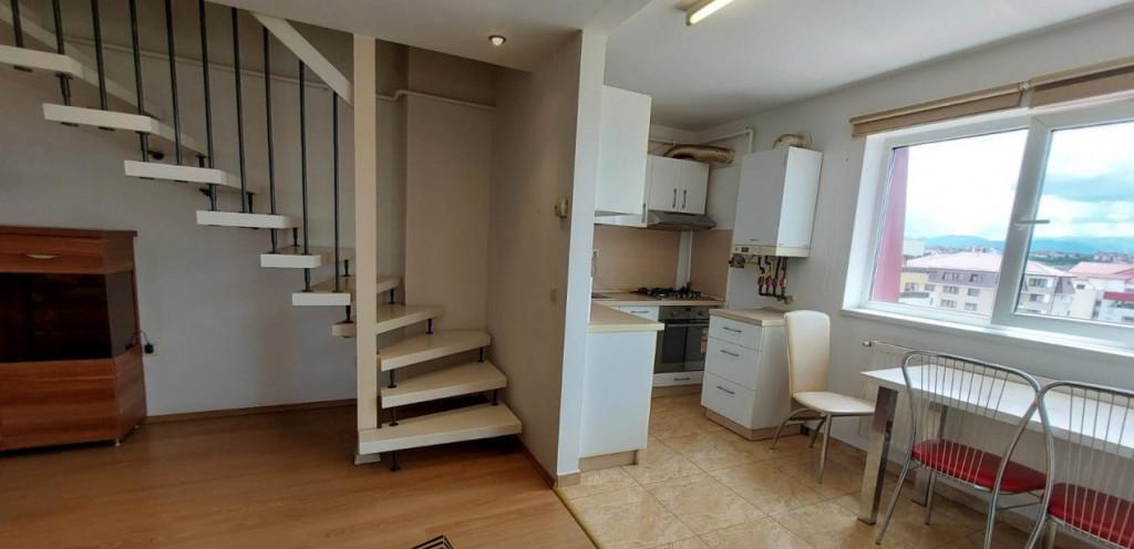 Blitz itivpropune sa descoperi rafinamentul unui penthouse spectaculos pe doua niveluri situat intr-un bloc nou intr-una dintre cele mai apreciate zone din Targu Mures - Uni Compartimentare Parter -Living elegant cu semineu functional -Bucatarie moderna complet utilata cu zona de dining -Dormitor matrimonial cu dressing generos -Baie spatioasa cu cada -Spatiu de depozitare -Terasa panoramica Etaj -Doua camere luminoase ideale pentru dormitor birou sau hobby room -Baie moderna -Terasa privata cu jacuzzi si zona de relaxare Detalii si dotari -Mobilier si finisaje premium -Design contemporan echilibrat si functional -Semineu jacuzzi dressing spatii de depozitare -Parcare privata inclusa -Suprafata generoasa si priveliste superba Locatie Zona Unirii - acces facil catre centrul orasului magazine scoli zone verzi Pret 1 280 EUR/luna Perfect pentru cei care apreciaza confortul intimitatea si eleganta unui spatiu de top Pentru detalii si vi...