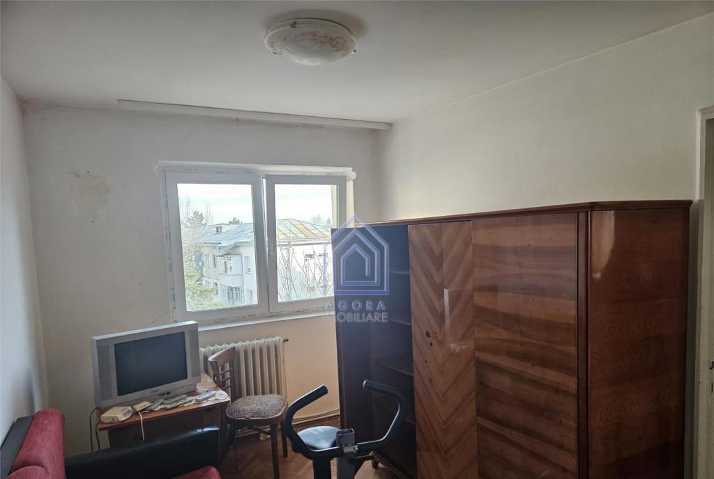 Agora Imobiliare ofera la vanzare un apartament cu 3 camere situat in zona centrala a orasului intr-un bloc anvelopat etaj 4 cu sarpanta Hol spatios 3 camere baie cu geam bucatarie si balcon Apartamentul este dotat cu centrala termica si geamuri termopan