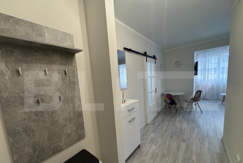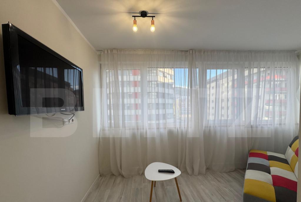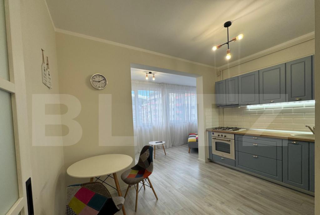 Blitz va propune spre vanzare un apartament cu design deosebit in zona strazii Constantin Brancusi Datorita pozitionarii accesul catre centrul orasului se face usor atat cu masina cat si cu ajutorul mijloacelor de transport in comun Pozitionat la etajul 4 al unui imobil cu regim de inaltime P 4 insa cu acoperis sarpanta deasupra apartamentul se bucura de 60 mp prezentati astfel living spatios bucatarie decomandata care se poate deschide pentru a avea open space cu livingul 1 dormitor spatios 1 nisa de dormit care se poate utiliza dupa nevoie si ca dressing sau birou 1 baie cu geam 1 hol 1 balcon cu vedere spre cartierele Buna Ziua si Gheorgheni Atentia la detalii a proprietarilor face diferenta in cazul acestui apartament Apartamentul beneficiaza de usa metalica la intrare aer conditionat si se vinde mobilat/utilat de asemenea beneficiaza si de o boxa spatioasa la demisolul blocului Cheia este la noi Te asteptam la vizionare pentru a descoperi farmec...