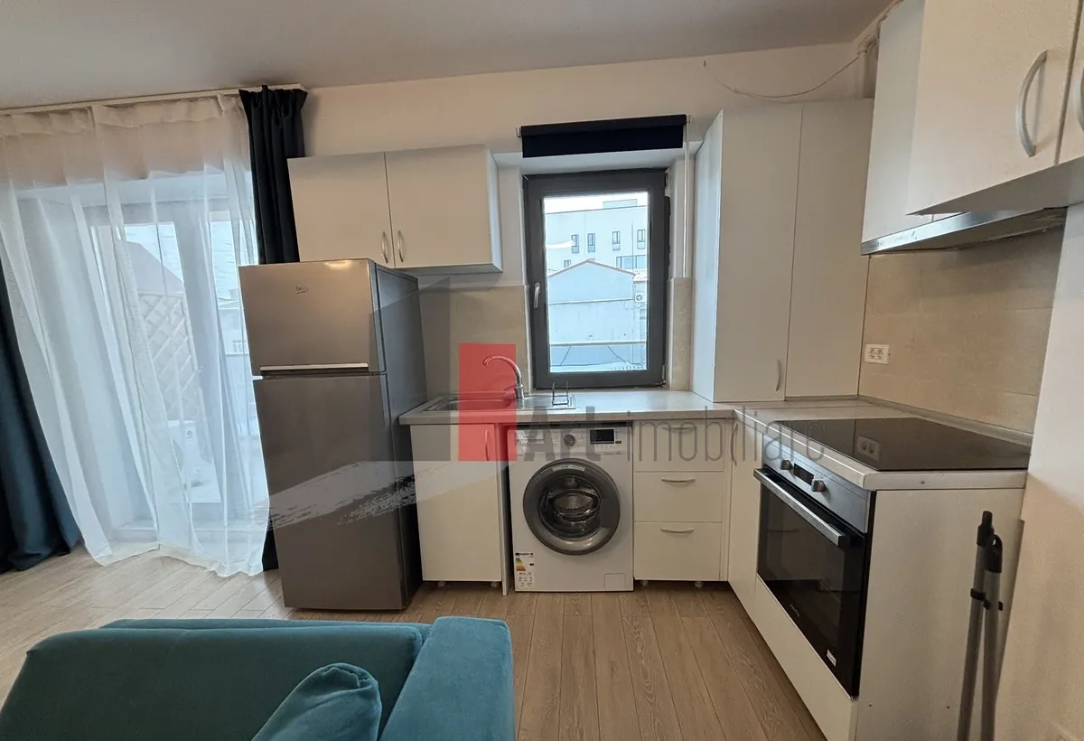 Apartament cu doua camere de inchiriat, cu o suprafata de 48 mp, semidecomandat, la etajul 3 din 5, al unui imobil nou, civilizat, cu acces in curte si in bloc pe baza de interfon si cu sistem de monitorizare video pe caile de acces. Apartamentul a fost dat in folosinta in vara anului 2022, este complet utilat si mobilat, contorizat, cu bucataria open cu sufrageria, cu balcon deschis, dispune de finisaje de calitate, centrala termica proprie, incalzire in pardoseala, doua unitati de aer conditionat. Este un spatiu luminos, ideal pentru confortul tau. Se poate aloca si un loc de parcare din luna iulie (se achita extra, 100E). Nu se accepta animale de companie. Se face contract la ANAF.