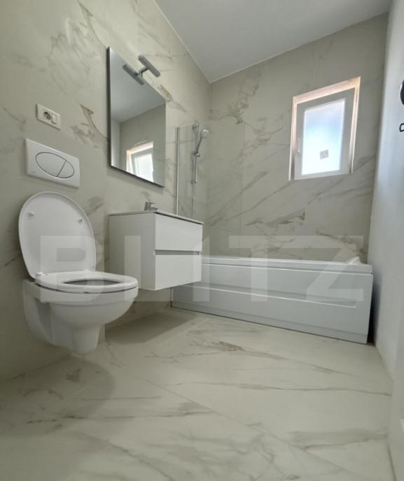 Blitz va propune spre vanzare un apartament modern care sa va ofere si confortul unei case Situat in Cartierul Arhitectilor intr-un bloc cochet cu regim de inaltime redus P 2 acest apartament cu 3 camere imbina perfect eleganta interioara cu bucuria unei gradini private generoase Caracteristici principale - Suprafata utila 57 7 mp compartimentata practic cu 2 dormitoare spatioase si living open space cu bucatarie foarte luminos amenajat modern cu finisaje de calitate - Baie eleganta dotata complet - Gradina privata de 125 mp amenajata cu gazon natural si zone distincte de relaxare terasa generoasa pentru mese in aer liber zona lounge cu canapea si umbrela spatiu barbecue colt dedicat copiilor cu leagan si trambulina Acces dublu din scara interioara a blocului sau direct din gradina Loc de parcare propriu inclus in pret parcare suplimentara pentru vizitatori Dotari de top - Incalzire in pardoseala pentru un confort termic supe...