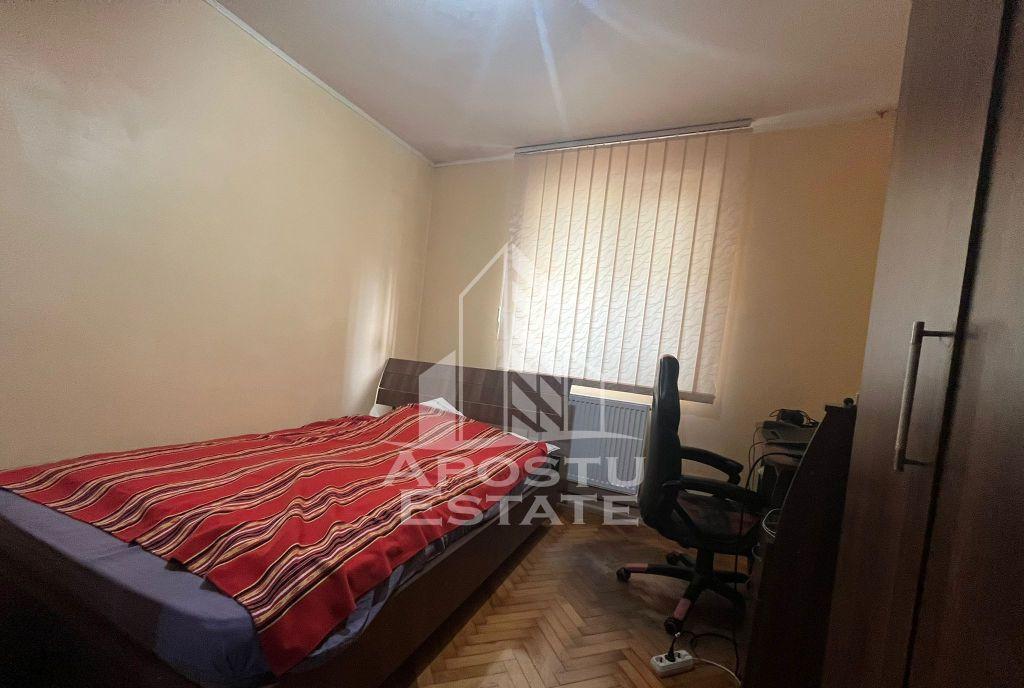 Apostu Estate va propune spre vanzare un apartament cu 4 camere si 2 bai situat in zona Soarelui Apartamentul are o suprafata generoasa de 86 mp si este compartimentat astfel -Hol de acces -Bucatarie separata -Dormitor cu balcon -Baia principala -2 Dormitoare -Living - Baie de servici Pe nivel sunt 2 apartamente vederea apartamentului este pe trei parti si confortul termic este asigurat de centrala proprie pe gaz - constructie solida din placi de beton prefabricate an de punere in folosinta 1982 - proprietatea dispune de ferestre cu geam termopan si rulouri metalice - exista locuri de parcare amenajate in imprejurul blocului Vecinatati - Carefour Market Pizza Thalia Petrom Zone Cafe Pub Lido - statie BUS E2 16 Tramvai 9 - Spitalul Judetean Casa Austria Maternitatea Bega - Scoala generala nr 30 Liceul Waldorf Gradinita Waldorf Gradinita pp11 -Parcul Padurice Parcul Sudului -Ideal pentru familii cu copii In ...