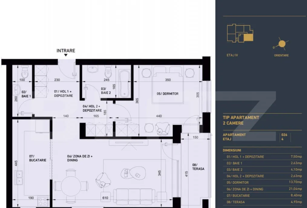 ✔ 2 camere – spatiu util generos, cu accent pe confort