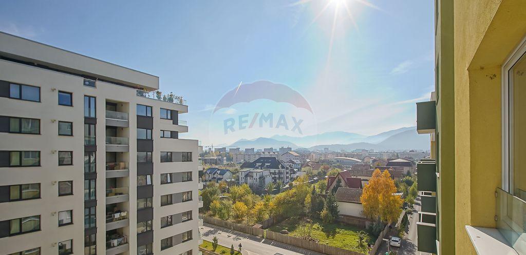 Unele dimineti merita vazute de sus cu o cafea in mana si lumina soarelui care intra exact cat trebuie Asa incepe ziua in acest apartament de 2 camere din Top City Residence la etajul 6 din 10 cu vedere spre est Aceasta orientare iti permite sa te bucuri de dimineti luminoase fara sa fie nevoie sa folosesti iluminat artificial si este destul de racoros pe timpul verii Este situat pe strada Stefan Baciu 64 in zona Tractorul - Coresi Mall unde ai tot ce-ti trebuie la doi pasi magazine sala cafenea cinema Fara drumuri lungi fara stres Suprafata interioara este de 52 8 mp utili plus un balcon de 4 mp si o terasa acoperita de 12 mp Se vinde exact asa cum il vezi mobilat si utilat cu electrocasnice premium plita si cuptor Samsung hota Bosch frigider LG cuptor cu microunde incorporabil Siemens masina de spalat vase Whirlpool masina de spalat Samsung si uscator Samsung In living regasim aer conditionat cu aplicatie mobila si un televizor Samsung cu diagonala de 163 cm Spatiul e gandit practic 2 holuri cu spatiu de depozitare living cu bucatarie dormitor baie balcon si terasa acoperita In pretul de vanzare este inclusa o boxa ce se afla la subsolul blocului Daca iti place ideea de dimineti luminoase si serile relaxate pe terasa s-ar putea ca acesta sa fie locul tau