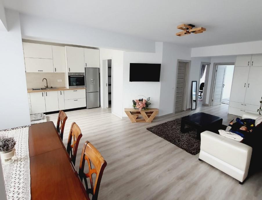 Agentia Imobiliara Family va ofera spre vanzare un apartament elegant situat intr-un bloc nou intr-o zona excelenta complet mobilat si utilat finisaje premium design modern centrala termica aer conditionat balcon luminos ideal atat pentru locuit cat si pentru investitie cu randament imediat Apartamentul este situat la etajul 4/6 cu lift intr-o zona linistita cu acces rapid la mijloace de transport centre comerciale restaurante scoli/licee gradinite universitate Ideal pentru investitori apartamentul se poate inchiria imediat fara investitii suplimentare ID 231