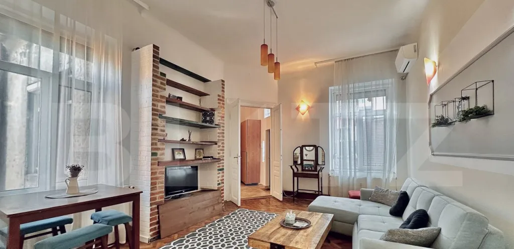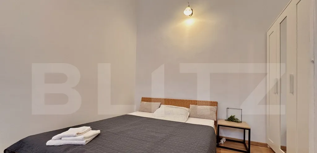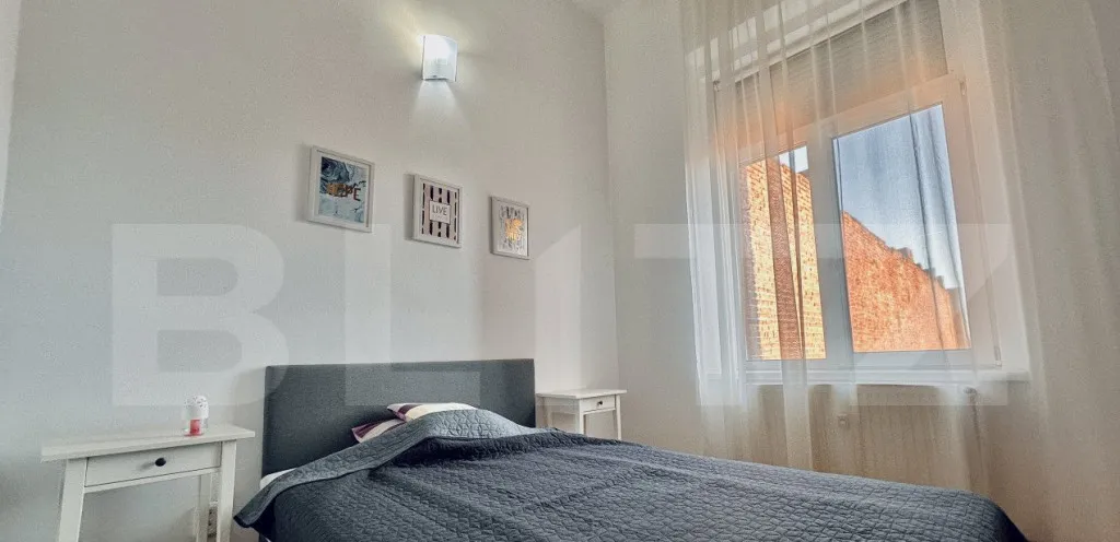 Blitz va propune un apartament de vanzare in inima orasului Oradea. Acesta e ideal pentru investitie, pentru regim hotelier sau pentru locuit. Apartamentul este renovat si se vinde mobilat si utilat asa cum se vede in poze. Apartamentul este decomandat si este compartimentat altfel: 2 dormittoare, living open space cu bucataria si o baie.