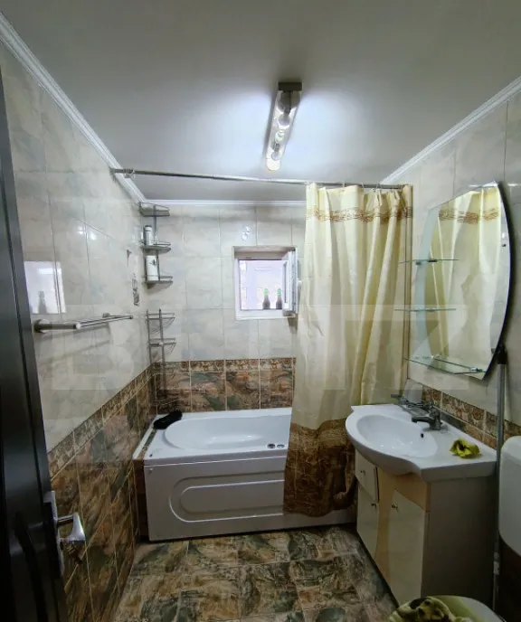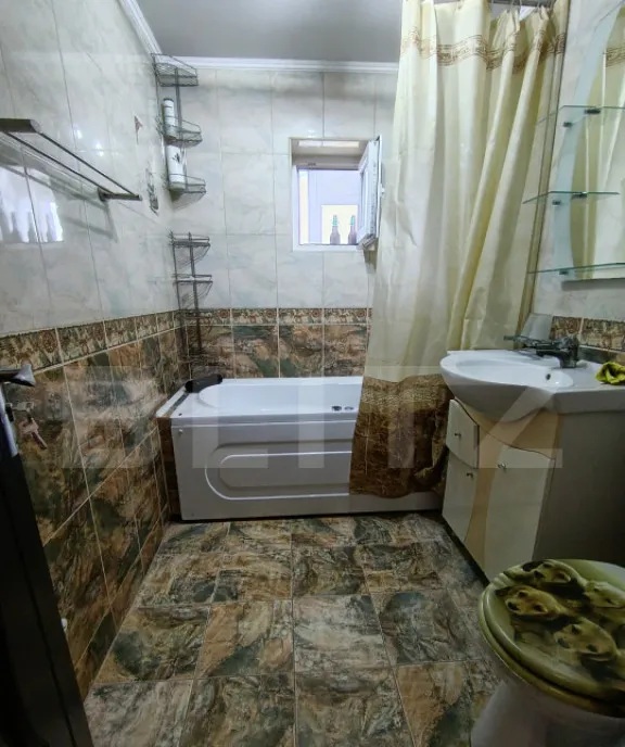 Compartimentare modernă: 3 camere spațioase, bucătărie mobilată și utilată, baie mare cu cadă.