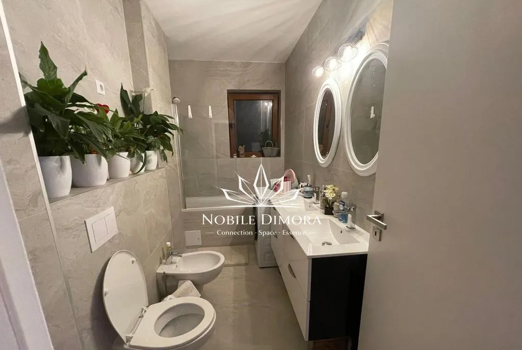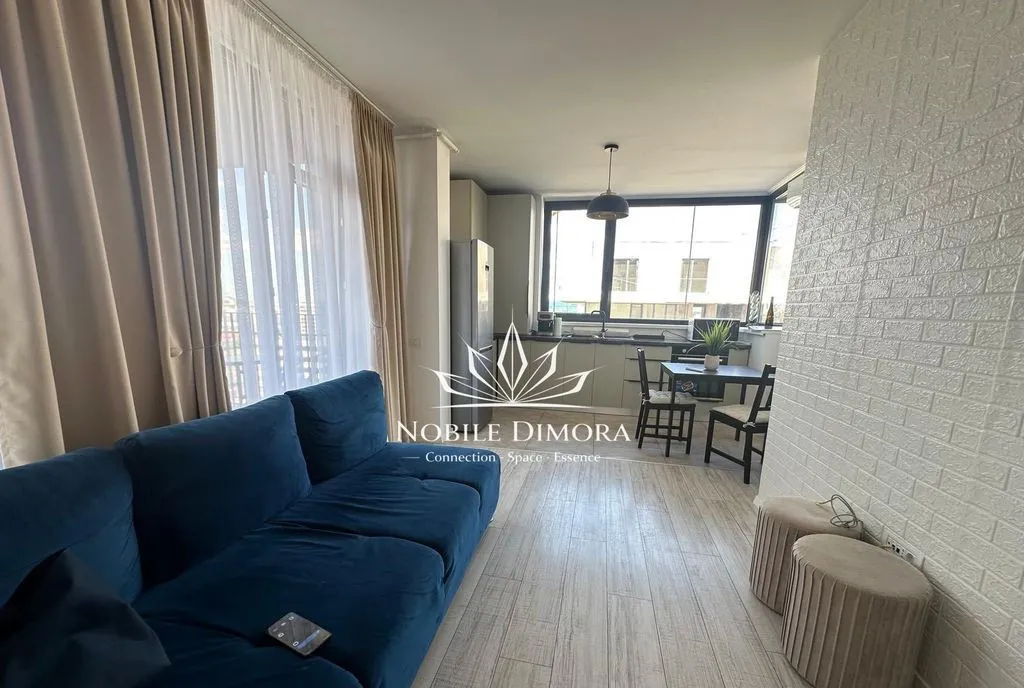 Este compartimentat in hol spatios, living cu bucatarie mobilata modern, dormitor matrimonial si baie cu vana. Dispune de centrala proprie, aer conditionat, semineu electric, lift, parcare subterana.