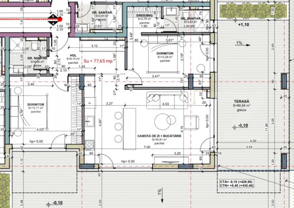 • Suprafață utilă: 77,65