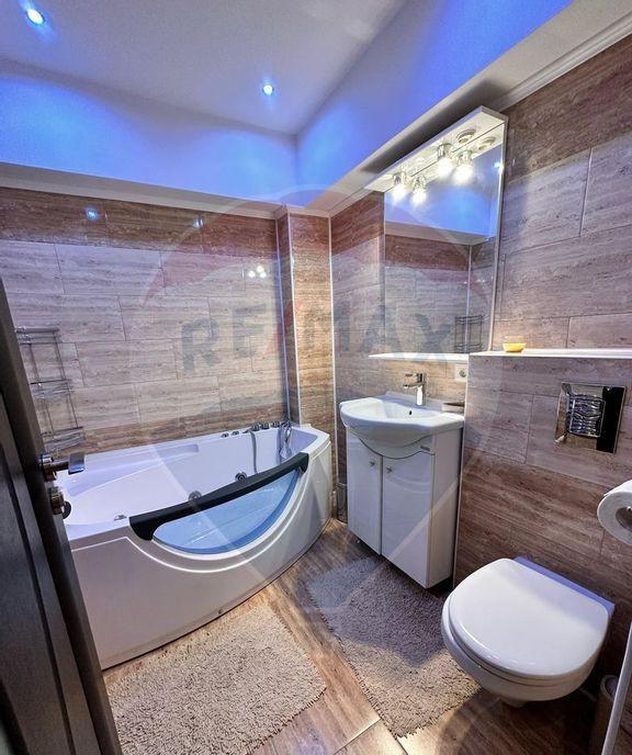 Avem placerea sa va prezentam un penthouse superb situat la 7 minute de Mall Baneasa si aeroportul Otopeni - Henry Coanda intr-o locatie centrala linistita si aerisita din orasul Otopeni in imediata apropiere a viitoarei statii de metrou Penthouse-ul luminos si plin de energie cu o suprafata generoasa la care se adauga 130 mp de terase se afla intr-un complex premium unul dintre cele mai bine structurate executate si administrate din zona metropolitana a Bucurestiului Se afla pe intreg etajul finisat si echipat cu materiale de cea mai buna calitate Tamplarie aluminiu cu vitrare ampla marca Schuco piatra naturala de calitate premium mozaic de colectie parchet din lemn si terase exterioare cu decking din lemn natural de teak Zona de zi beneficiaza de o sufragerie mare de aproximativ 65mp cu un semineu pe lemne si acces direct intr-o o terasa generoasa 70 mp cu copertina retractabila si cada exterioara pentru 5 persoane cu hidomasaj marca Jacuzzi Bucataria spat...