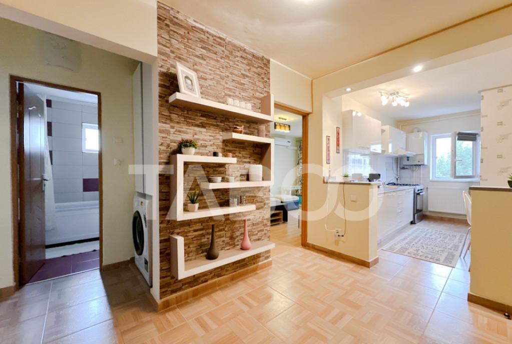 Apartament 2 camere de vanzare semidecomandat 40 mp zona Vasile Aaron Sibiu Apartament cu pivnita si balcon in aproprierea gradinitei langa piata agroalimentara Vasile Aaron disponibil imediat Avantaje majore ale acestui apartament bull pivnita generoasa pentru depozitare de aproximativ 10 mp bull ultimul etaj fara vecini deasupra cu acoperis renovat si in garantie bull nbsp zona de interes langa facultati bull nbsp posibilitate de preluare chirias bull pretabil investitie sigura TABOO Imobiliare propune un apartament de vanzare cu 2 camere semidecomandat situat in localitatea Sibiu zona Vasile Aaron aflat la etajul 4 intr -un imobil tip bloc cu regim de inaltime pe Parter 4 Etaje anul constructiei 1980 structura caramida Suprafata utila de 40 mp balcon deschis de 3 mp Apartamentul este structurat astfel bull Hol bull Bucatarie separata bull Baie bull Living cu balcon bull Dormitor bull Hol intermediar bul...