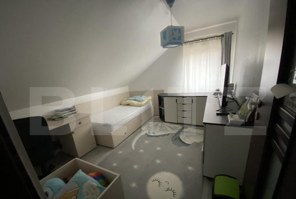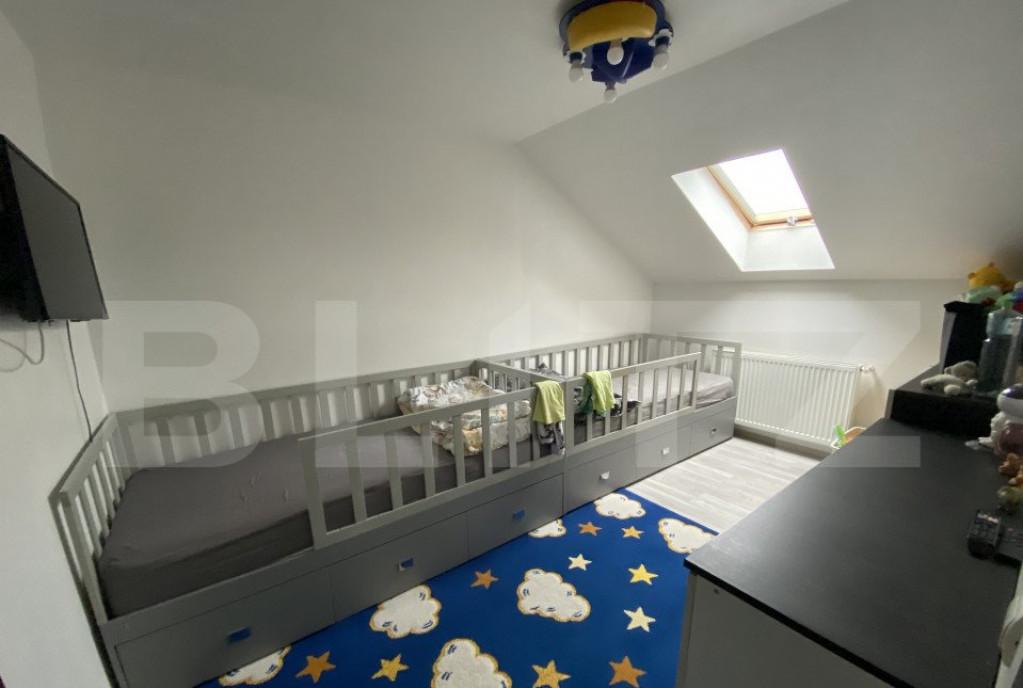 Blitz Imobiliare va propune spre vanzare un apartament deosebit situat intr-o zona rezidentiala aflata in plina dezvoltare Finalizat in anul 2019 acest imobil imbina designul modern cu o compartimentare inteligenta pe doua niveluri oferind intimitatea si spatiul unei case De ce sa alegi aceasta proprietate - Gata de mutare Se vinde complet mobilat si utilat - Spatiu generos Dispus pe etajul 3 si mansarda apartamentul ofera zone distincte pentru relaxare depozitare si lucru de acasa - Luminozitate si liniste Situat intr-un bloc nou intr-o zona ferita de agitatia urbana dar cu acces rapid catre punctele de interes - Compartimentare Functionala Nivel 1 - Hol de acces primitor - Living luminos cu iesire pe balcon - Bucatarie complet echipata - Dormitor matrimonial confortabil - Baie moderna Mansarda Spatiu Versatil - Compartimentata in 3 incaperi dedicate Dressing spatios Debara pentru depozitare si o Camera suplimentara ideala pentru birou hob...