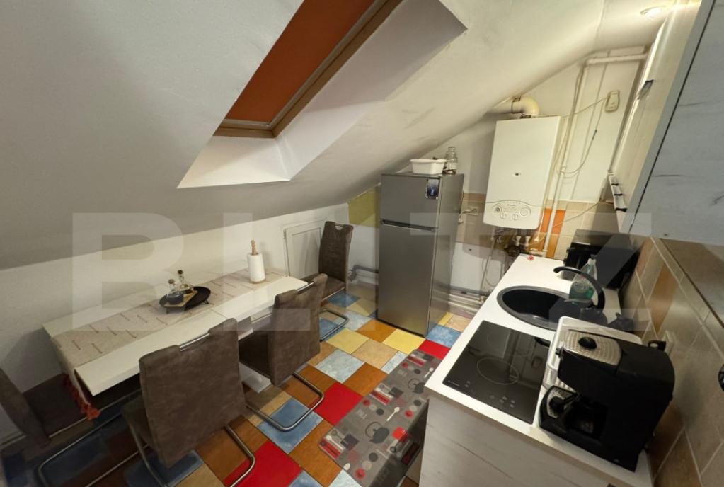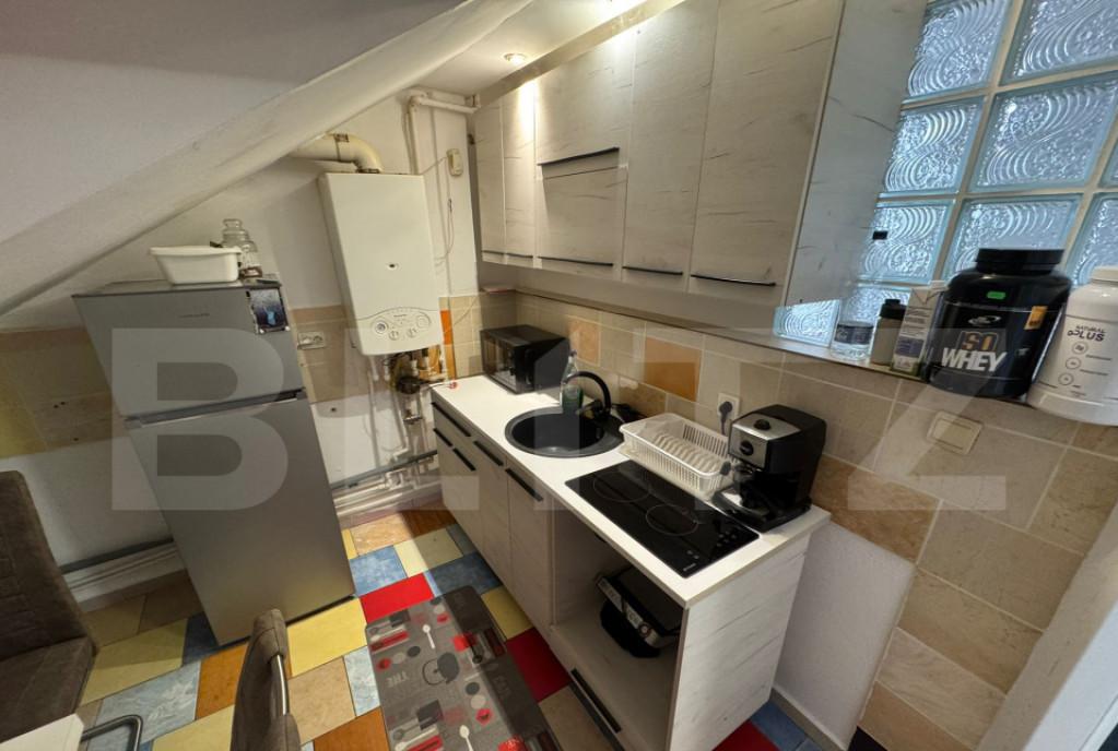 Blitz ofera spre vanzare o proprietate deosebit de versatila amplasata intr-o zona excelenta cu deschidere la doua strazi - oferind numeroase posibilitati de utilizare Noul proprietar poate transforma imobilul intr-o locuinta personala confortabila sau intr-o investitie profitabila cu potential de amenajare ca spatiu comercial birouri clinica medicala pensiune sau hostel Cladirea este structurata pe demisol parter etaj si pod fiecare nivel fiind contorizat separat pentru gaz si electricitate Demisolul cu intrare separata din strada a functionat anterior ca spatiu comercial si are o suprafata utila de 53 32 mp fiind compus dintr-o camera spatioasa bucatarie si hol Parterul cuprinde 3 camere luminoase bucatarie baie cu geam si o terasa inchisa ideala pentru relaxare Etajul a fost complet refacut oferind un living modern cu mini bar o bucatarie mare doua camere si o baie generoasa cu cada Podul poate fi amenajat suplimentar in functie de necesitati Curtea ...