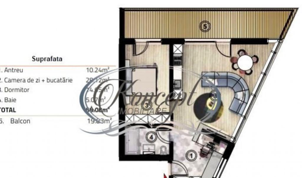 Koncept Imobiliare va ofera spre vanzare un apartament decomandat cu 2 camere situat in cartierul Intre Lacuri intr-un ansamblu rezidential nou aflat la doar cateva minute de Iulius Mall si FSEGA Proprietatea este amplasata la etajul 2 al unui imobil cu regim de inaltime P 4E beneficiind de o suprafata utila de 52 85 mp si balcon de 7 mp Compartimentarea este moderna si functionala living luminos bucatarie separata dormitor spatios baie cu geam si hol generos cu acces facil catre toate incaperile Se vinde la stadiul de semifinisat oferind viitorului proprietar libertatea de a personaliza finisajele dupa propriul stil Se preda cu peretii gletuiti usa metalica la intrare centrala termica proprie si sistem de incalzire prin pardoseala instalatiile pe pozitie Imobilul face parte dintr-un ansamblu rezidential modern realizat cu materiale de calitate si cu accent pe confortul cotidian - lift silentios spatii comune ingrijite si acces rapid la mijloace de transport magazi...