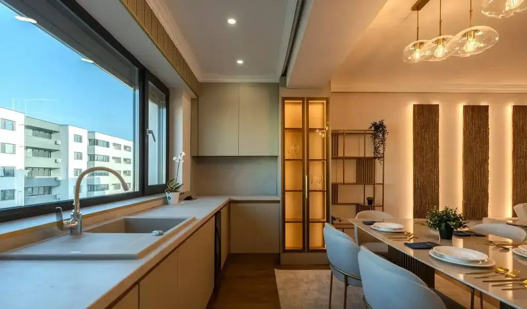 • Bucătărie și living open-space: Bucătăria și livingul sunt integrate într-un spațiu deschis, perfect pentru socializare și relaxare.