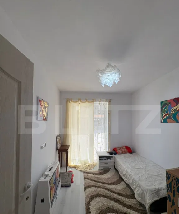 Al doilea dormitor – ideal pentru birou sau cameră copil, luminat natural, dotat cu pat și mobilier esențial
