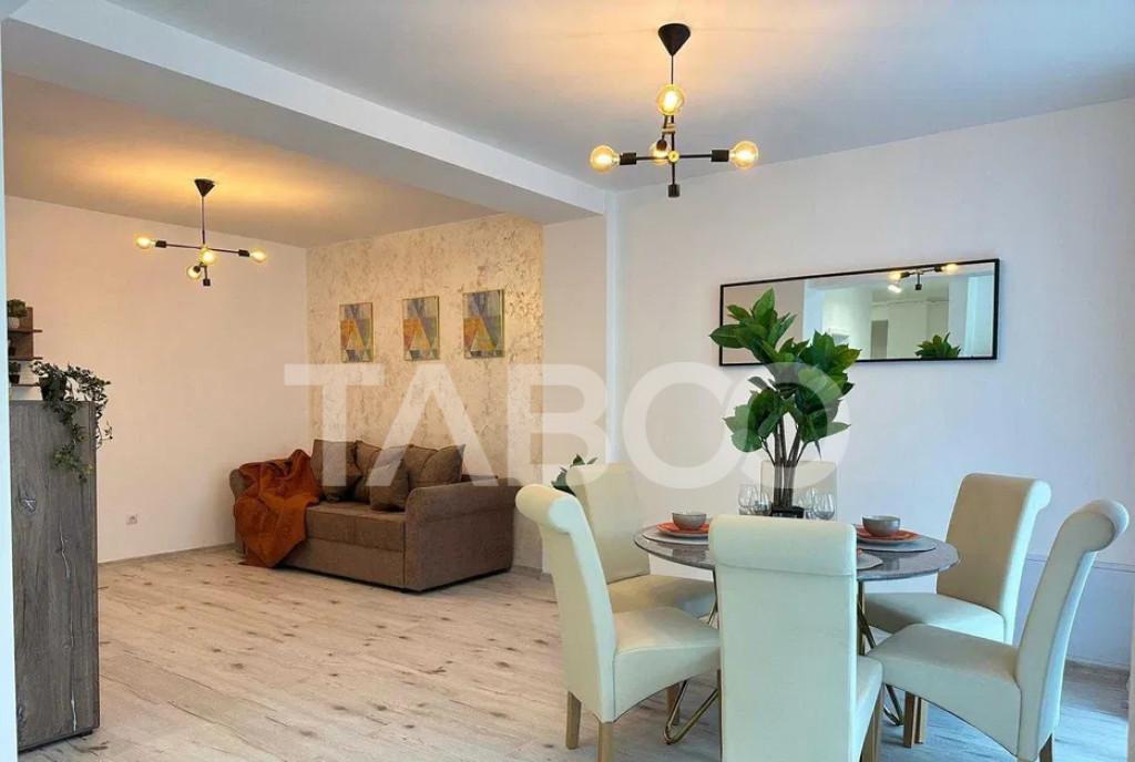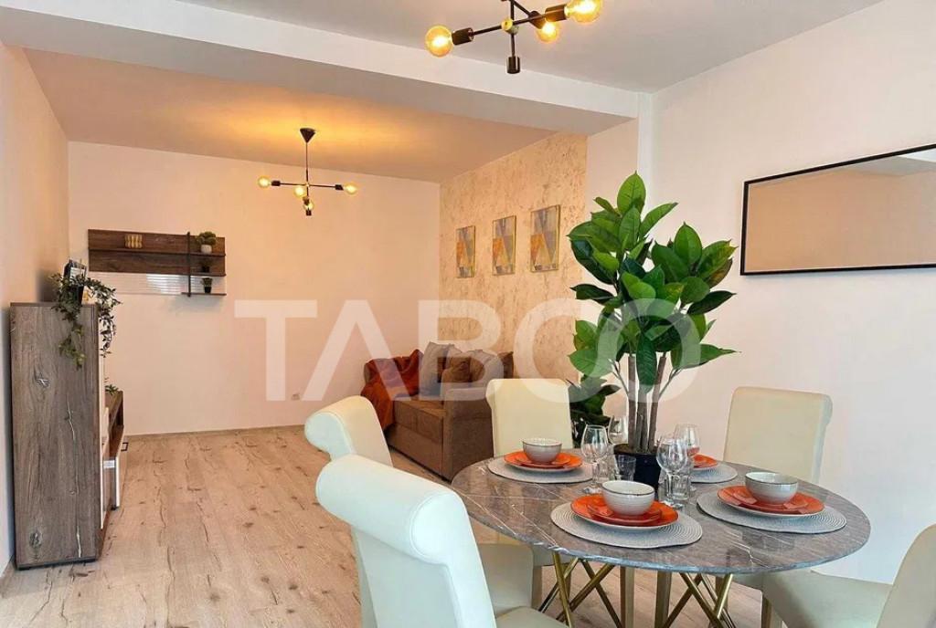 Apartament 3 camere de vanzare decomandat 64 mp zona Turnisor Sibiu Avantaje majore ale acestui apartament bull Pretabil investitie sigura bull Etaj intermediar TABOO Imobiliare propune un apartament de vanzare cu 3 camere decomandat situat in localitatea Sibiu zona Turnisor aflat la etajul 1 intr -un imobil tip bloc cu regim de inaltime pe Parter 3 Etaje anul constructiei 2006 structura caramida Suprafata utila de 64 mp balcon de 4 mp Apartamentul este structurat astfel bull Hol bull Bucatarie bull Living cu balcon bull Baie bull nbsp Dressing bull 2 dormitoare Finisajele interioare sunt nbsp moderne bull Usa intrare metal bull Usi interioare celulare nbsp nbsp nbsp nbsp nbsp nbsp nbsp nbsp nbsp bull Tamplarie ferestre pvc termopan nbsp nbsp nbsp bull Pereti vopsea lavabila faianta bull Podele parchet gresie Utilitati si dotari bull Bucatarie mobilata part...