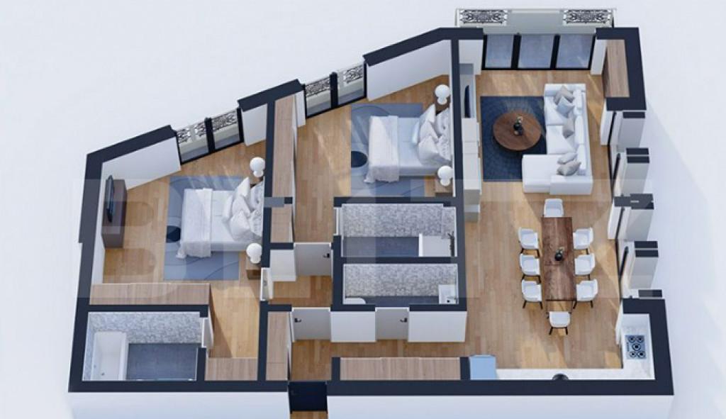 BLITZ propune spre vanzare un apartament de lux situat in zona centrala a municipiului Targu Mures in imediata apropiere a Cetatii Medievale Proprietatea se remarca printr-o suprafata totala de 109 mp la care se adauga un spatiu de depozitare de 10 22 mp Apartamentul este decomandat si are o compartimentare moderna fiind compus din Living open-space cu bucatarie Doua dormitoare Trei bai Patru balcoane Boxa de depozitare Imobilul beneficiaza de un loc de parcare subteran iar locatarii au acces la facilitati exclusiviste precum SPA piscina interioara si sala de fitness toate aflate in incinta cladirii Apartamentul este situat intr-o cladire moderna cu standarde ridicate de constructie ideal pentru cei care isi doresc o locuinta de exceptie in inima orasului sau o investitie sigura intr-o zona de top Cod oferta / ID BLITZ P150641 Id intern P150641
