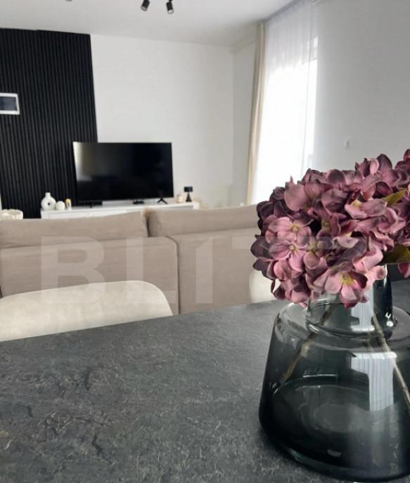 Blitz propune spre vanzare un apartament cu 2 camere situat la etajul 1 al unui imobil cu regim de inaltime P 3 Suprafata totala 58 mp Compartimentare practica si bine gandita Living cu bucatarie open-space luminos si spatios Dormitor confortabil Balcon generos de 7 5 mp transformat partial in spatiu de depozitare Apartamentul se vinde partial mobilat si utilat conform fotografiilor si se prezinta intr-o stare impecabila fara necesitatea unor investitii suplimentare Facilitati 1 loc de parcare exterioar inclus in pret 1 loc de parcare exterior optional 5000E Localizare Proprietatea este amplasata intr-o zona linistita cu acces rapid catre oras ideala pentru cei care isi doresc confort si intimitate Beneficiaza de strada asfaltata cu trotuare statie de autobuz la maximum 5 minute de mers pe jos imobil cu putine apartamente si vecini linistiti O locuinta perfecta pentru o familie tanara sau pentru cei care isi ...