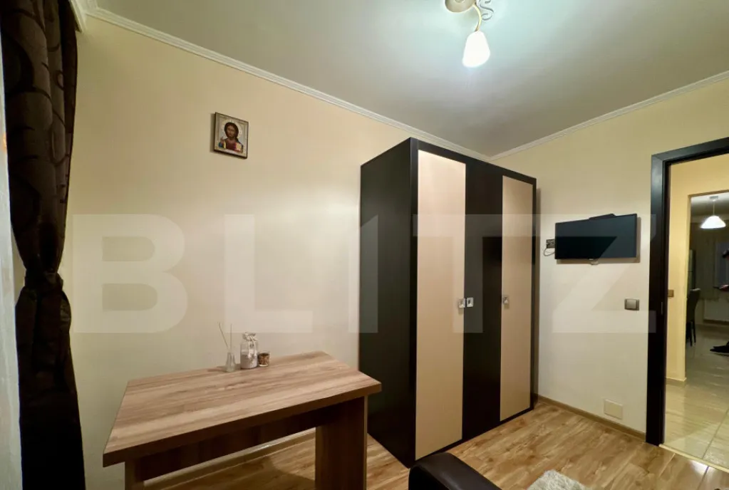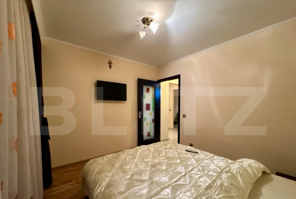 Locuința este complet renovată și se vinde mobilată și utilată, conform fotografiilor. Beneficiază de modernizări importante: instalație electrică pe cupru, instalație sanitară schimbată, țevi de căldură înlocuite anterior, geamuri termopan, ușă metalică la intrare și finisaje bine păstrate. Încălzirea este asigurată prin sistemul centralizat al orașului.