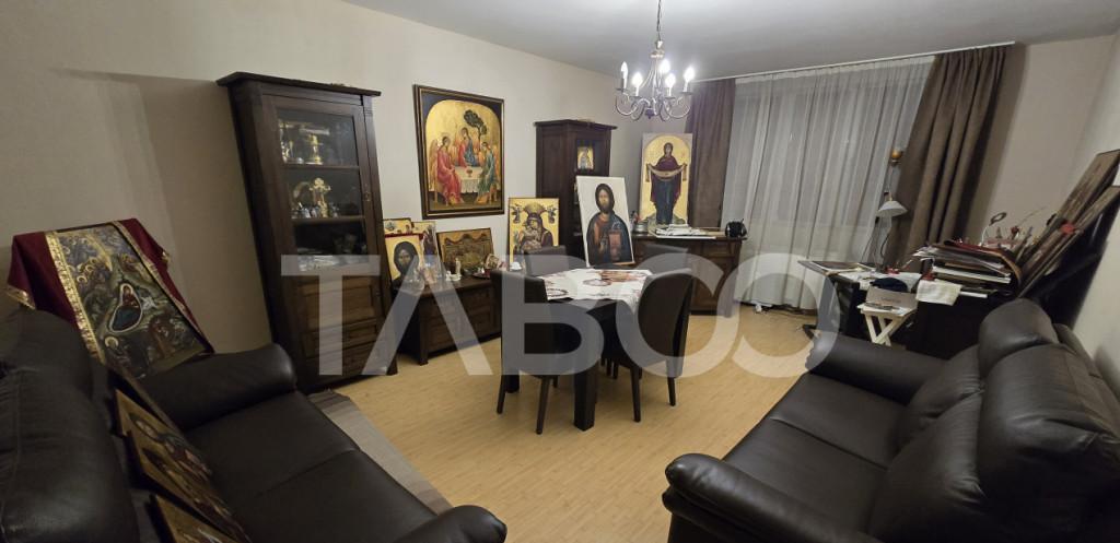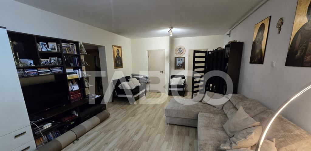 COMISION 0 - Apartament 3 camere de vanzare decomandat 69 mp zona Siretului Sibiu Avantaje majore ale acestui apartament nbsp bull Locuri de parcare in zona bull nbsp Pivnita inscrisa in acte bull nbsp Pretabil investitie sigura bull Locatie ferita de aglomeratie bull Bucatarie separata TABOO Imobiliare propune un apartament de vanzare cu 3 camere decomandat situat in localitatea Sibiu zona Siretului aflat la etajul 4 intr -un imobil tip bloc cu regim de inaltime pe Parter 4 Etaje anul constructiei 1985 structura caramida Suprafata utila de 69 mp balcon de 7 mp Apartamentul este structurat astfel bull Hol bull Bucatarie bull Baie bull Living cu balcon bull Dormitor cu balcon bull Dormitor Finisajele interioare sunt clasice bull Usa intrare lemn bull Usi interioare lemn nbsp nbsp nbsp nbsp nbsp nbsp nbsp nbsp bull Tamplarie ferestre pvc termopan nbsp nbsp nbsp bul...