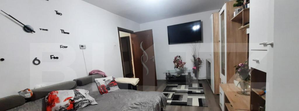 Va propun spre vanzare un apartament modern cu 3 camere semidecomandat situat intr-o zona linistita ideala pentru familii sau pentru cei care isi doresc confort si intimitate Apartamentul are o suprafata utila de 62 mp si este compus din 2 dormitoare living bucatarie separata baie hol si balcon inchis oferind o compartimentare practica si echilibrata Compartimentare si dotari - Dormitor principal dotat cu pat matrimonial noptiere dulap spatios si televizor - Dormitor secundar mobilat cu pat dulap cu doua usi comoda cu sertare si birou - ideal pentru copil sau birou de acasa - Living luminos cu canapea confortabila masuta de cafea mobilier modern si TV - Balcon inchis accesibil din living - perfect pentru relaxare - Bucatarie complet utilata cu electrocasnice frigider plita pe gaz hota si cuptor - Baie moderna dotata cu cada cu hidromasaj si obiecte sanitare de calitate - Hol spatios si usa de intrare antiefractie cu izolare fonica Apartamentu...