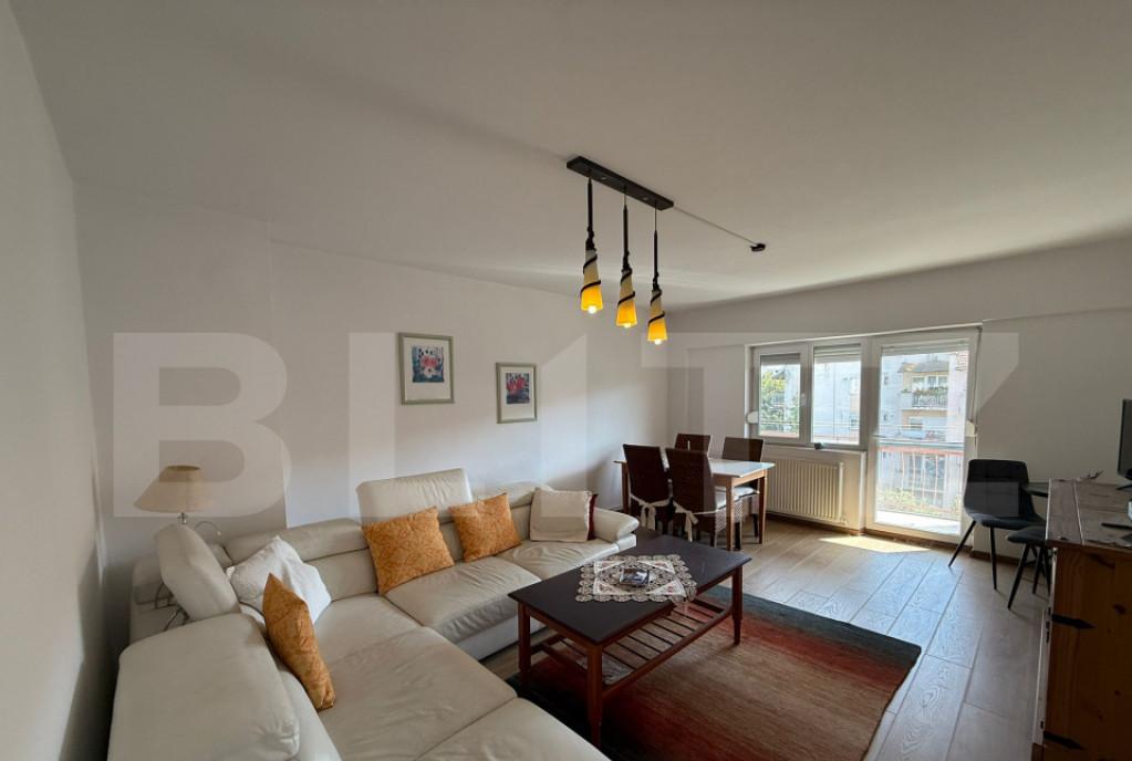 Blitz iti prezinta un apartament de 3 camere situat la etajul 1 din 4 cu 2 bai boxa la subsol si loc de parcare inclus in pret Suprafata utila 77 mp mobilat superb complet renovat -- pregatit sa devina acasa Localizare excelenta zona bine conectata aproape de magazine scoli mijloace de transport Finisaje moderne mobila de calitate ambient elegant Spatiu generos ideal pentru familie sau pentru cei care vor mai mult confort Pentru detalii si vizionari contacteaza-ne Cod oferta / ID BLITZ P154315 Id intern P154315