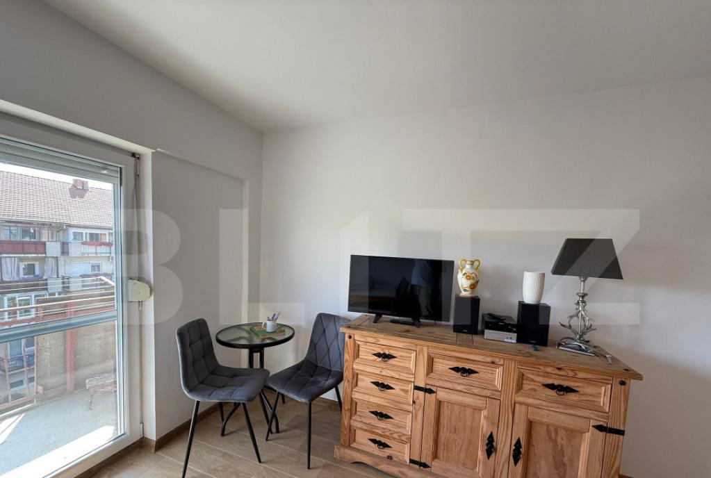 Blitz va prezinta un apartament de vanzare mobilat si utilat semidecomandat 50 mp utili zona Cetatii Imobilul este amplasatl la etajul 3 al unui bloc din caramida izolat termic la exterior la mica distanta de statia de autobuz M21 si M26 si puncte comerciale de interes Apartamentul dispune de centrala termica proprie tamplarie PVC cu geam termopan usa ametalica la intrare si este compus din living open space cu bucataria dormitor baie si balcon Pentru mai multe detalii nu ezitati sa ne contactati Cod oferta / ID BLITZ P154596 Id intern P154596