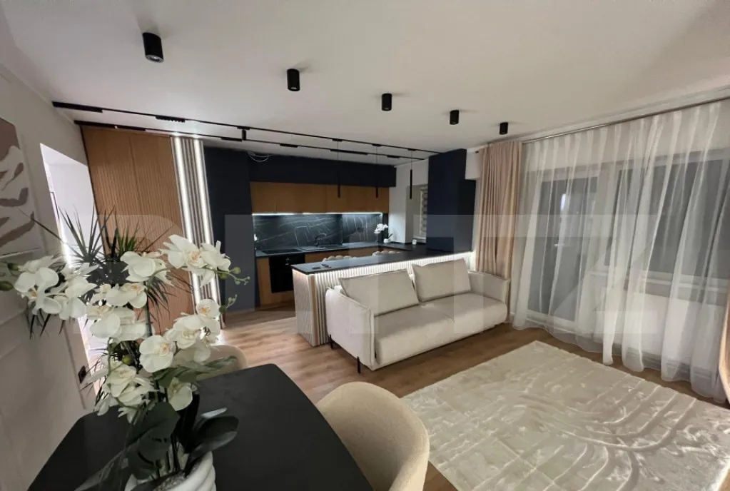Apartamentul este complet mobilat și utilat modern, gata de mutare, beneficiind de centrală termică proprie, finisaje de calitate și dotări complete: aer condiționat, frigider, mașină de spălat rufe, plită pe gaz, cuptor electric, hotă, Smart TV, aspirator și mobilier modern.