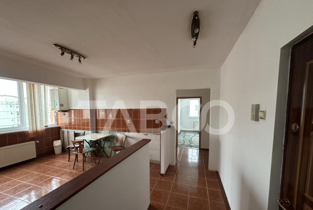 Apartament 3 camere de vanzare decomandat 67 mp zona Vasile Aaron Sibiu Avantaje majore ale acestui apartament bull Compartimentare eficienta bull nbsp Pivnita bull Pretabil investitie sigura bull Parcare extra pentru vizitatori bull Locatie ferita de aglomeratie TABOO Imobiliare propune un apartament de vanzare cu 3 camere decomandat situat in localitatea Sibiu zona Vasile Aaron aflat la etajul 9 intr-un imobil tip bloc cu regimul de inaltime parter 10 Etaje anul constructiei 1980 pe structura din beton bloc prevazut cu lift nou Suprafata utila de 67 mp balcon de 3 mp si pivnita de 6 mp Apartamentul este structurat astfel bull Hol mare la intrare bull Living cu iesire in balcon bull Bucatarie cu iesire in balcon bull Hol intermediar bull Debara bull Dormitor bull Dormitor bull Baie cu geam de aerisire Finisajele interioare sunt clasice bull Usa intrare metal bull Usi interioare celula...