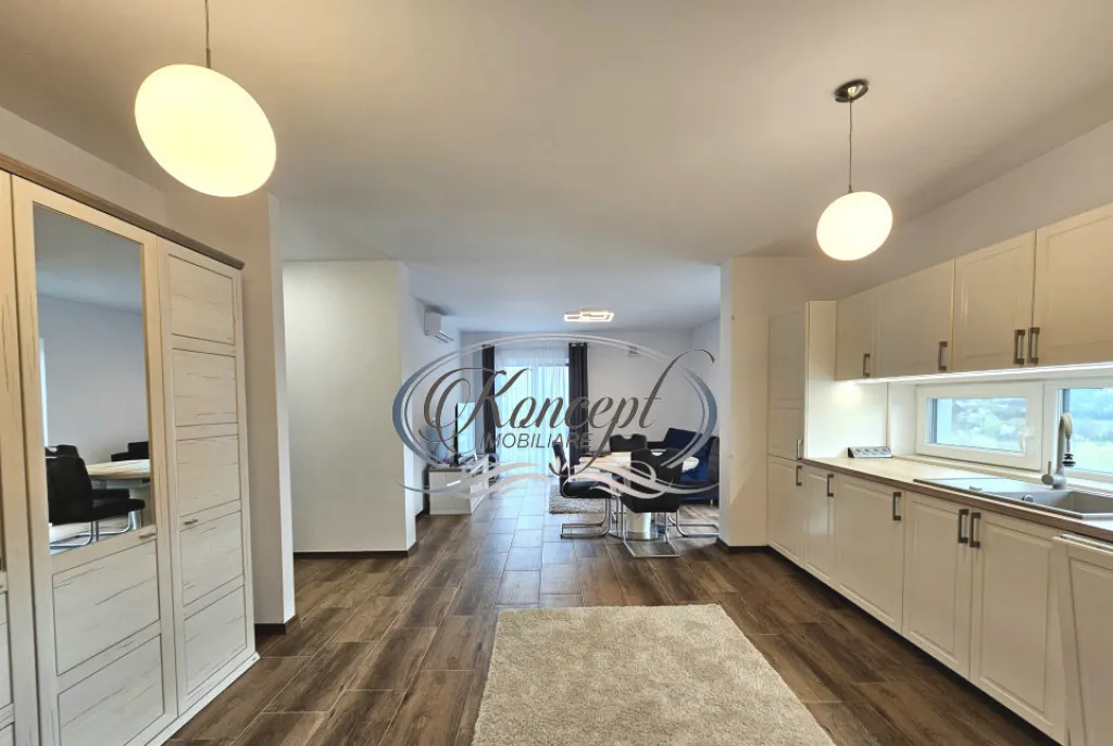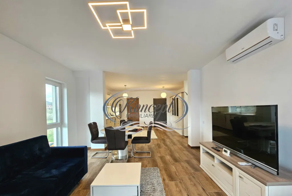 Koncept Imobiliare va ofera spre inchiriere un apartament ultrafinisat cu 3 camere, situat in ansamblul Grand Park Sud Residence, in cartierul Buna Ziua, intr-o zona rezidentiala aerisita, predominata de case si imobile cu regim redus de inaltime. Pozitionat la etajul 2 al unui imobil premium cu doar 2 niveluri si 6 apartamente, retras de la strada principala, proprietatea beneficiaza de liniste, intimitate si acces facil catre puncte de interes precum Liceul ELF, magazine, banci si statii de transport in comun. Apartamentul dispune de o suprafata utila de 85 mp, completata de un balcon generos de 10 mp, si este compartimentat eficient intr-un living open-space cu bucataria si loc de servit masa, un dormitor matrimonial, o camera care poate fi utilizata ca birou sau al doilea dormitor, doua bai moderne cu dus walk-in, o debara pentru depozitare si balcon. Locuinta este orientata Sud-Est, oferind lumina naturala pe tot parcursul zilei. Finisajele sunt de calitate superioara, iar mobilierul este realizat pe comanda, intr-un stil modern si functional. Apartamentul se inchiriaza complet mobilat si utilat, bucataria fiind echipata cu electrocasnice incorporate, inclusiv masina de spalat vase si masina de spalat rufe. Confortul termic este asigurat de centrala termica proprie cu incalzire prin pardoseala, sistem de aer conditionat multisplit cu unitati in fiecare camera, precum si sistem de ventilatie cu recuperare de caldura. De asemenea, proprietatea beneficiaza de ferestre cu trei foi de sticla si jaluzele electrice. Un alt avantaj important este reprezentat de comunitatea restransa si selecta, strada privata cu acces restrictionat prin bariera, precum si locul de parcare exterior inclus in pret. Atmosfera este ideala pentru cei care cauta un stil de viata linistit, intr-un cadru modern si bine organizat. Recomandam aceasta proprietate pentru un cuplu, o familie sau profesionisti care isi doresc un apartament premium, intr-o zona apreciata din Buna Ziua, cu acces rapid catre oras, dar ferit de agitatia urbana. Pentru informatii suplimentare, programarea unei vizionari sau pentru a afla oferta noastra completa va stam la dispozitie telefonic, prin e-mail sau la sediul agentiei noastre, pe str. Aviator Badescu, nr. 19, Cluj-Napoca.