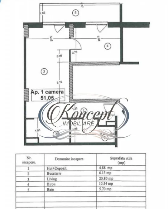 Koncept Imobiliare va ofera spre vanzare un apartament modern cu 2 camere, situat in ansamblul Elite City, cartier Iris, la etajul 5 din 7, cu orientare spre Est. Zona beneficiaza de acces facil catre Auchan si numeroase facilitati locale. Apartamentul are o suprafata utila de 51 mp si este compus din hol, living, bucatarie inchisa, dormitor, baie si balcon de 10 mp. Imobilul se vinde semifinisat, cu pereti in lavabil alb. Apartamentul dispune de sistem de incalzire prin pardoseala, contorizare separata pentru incalzire si apa, termostat wireless pentru controlul temperaturii direct de pe telefon, precum si infrastructura pregatita pentru instalarea aparatelor de aer conditionat. Jaluzelele exterioare din aluminiu sunt actionate smart, iar usile de intrare antiefracție asigura siguranta si izolare fonica. Optional se poate achizitiona si un loc de parcare subteran la 20.000 euro iar pretul apartamentului include 2 usi Porta Doors. Elite City reprezinta un concept inovator de regenerare urbana, cu locuinte Smart Ready, certificate nZeb (consum energetic aproape zero), cu panouri fotovoltaice pe cladiri si materiale naturale care optimizeaza pastrarea caldurii. Ansamblul dispune de 3500 mp parc si multiple zone verzi, teren de sport, sala de fitness, pista de alergare, spa si piscina, supermarket propriu si scoli in incinta ansamblului. Structura de rezistenta din beton armat, pereti exteriori din Ytong cu izolare termica de 15 cm, pereti interiori din SILKA pentru fonoizolatie superioara si finisaje premium asigura confort, siguranta si durabilitate. Aceasta proprietate este ideala pentru locuit modern, investitie cu potential de inchiriere sau regim hotelier, datorita amplasamentului, finisajelor de calitate si facilitatiilor premium oferite de ansamblul Elite City. Luminozitatea, atmosfera intima si aerisita fac din acest apartament un spatiu confortabil si functional, potrivit atat pentru cupluri, cat si pentru profesionisti care lucreaza de acasa. Pentru informatii suplimentare, programarea unei vizionari sau pentru a afla oferta noastra completa va stam la dispozitie telefonic, prin e-mail sau la sediul agentiei noastre, pe str. Aviator Badescu, nr. 19, Cluj-Napoca.
