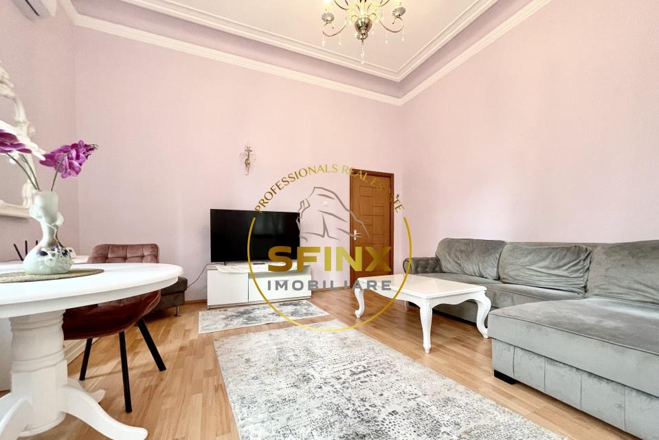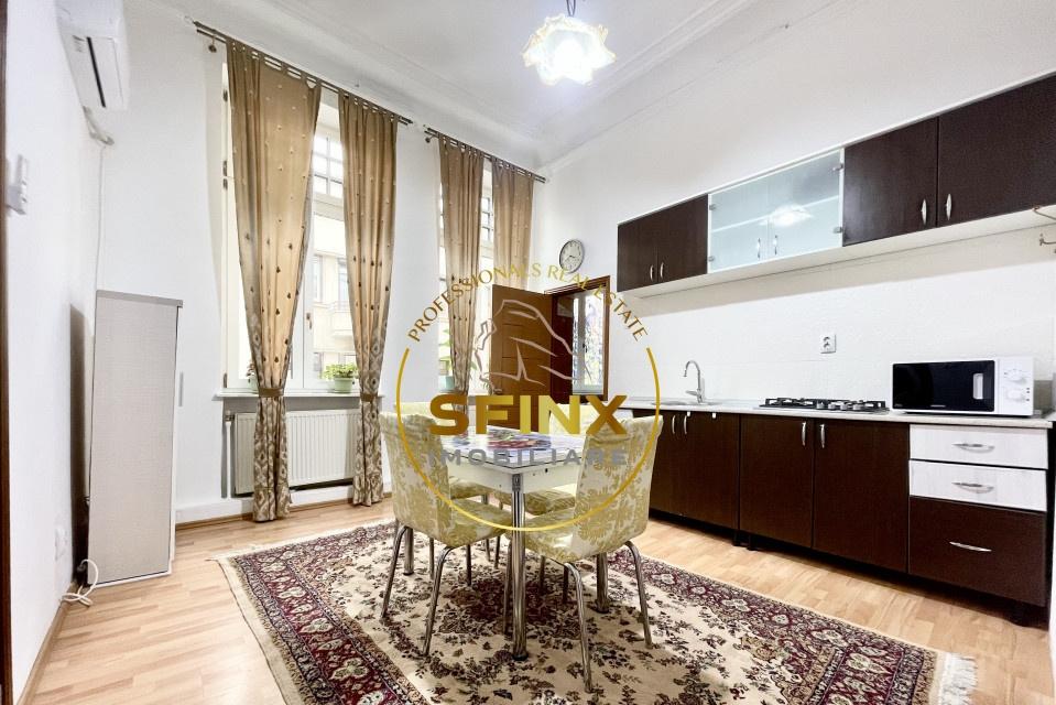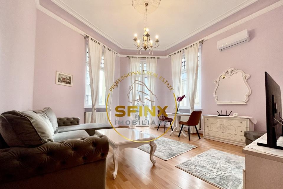 Cu o suprafata utila de 77mp apartamentul este decomandat oferind un spatiu generos si luminos Mobilat si utilat cu un stil elegant acesta va impresiona cu siguranta Caracterul apartamentului este accentuat de vitraliile originale pastrate in unele incaperi adaugand o nota de autenticitate si frumusete